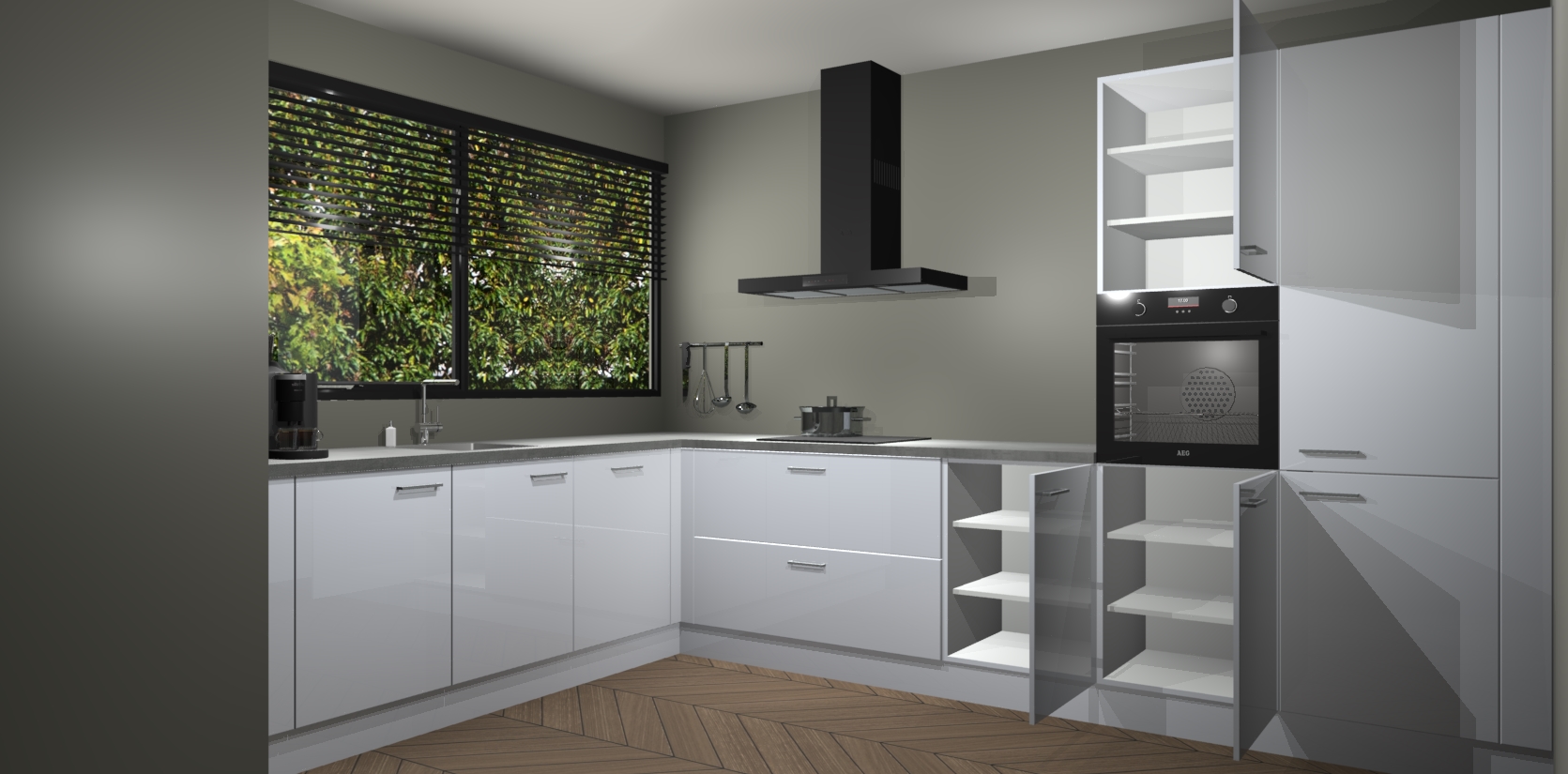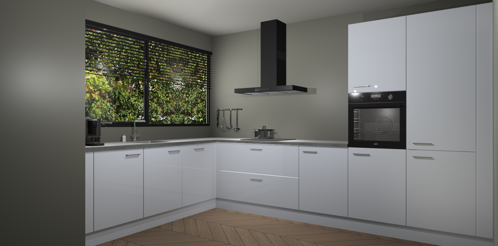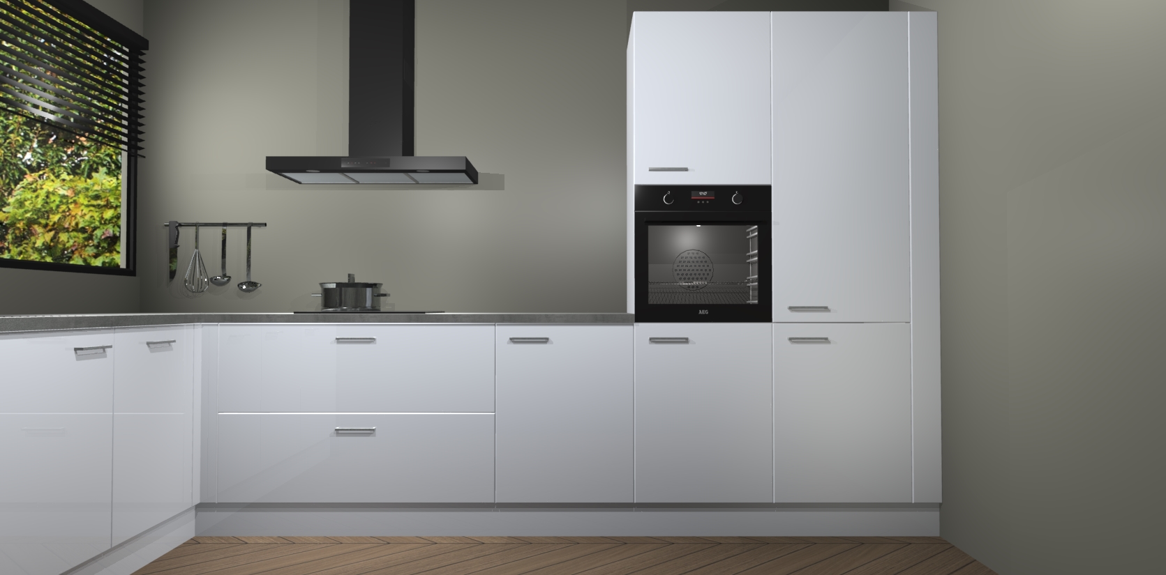 Met een modern, tijdloos design en ruime opslagruimte, zult u zich in no-time thuis voelen in uw nieuwe keuken. Uw leven wordt eenvoudiger met de soft-close deuren die voor het ultieme stille comfort zorgen - geen geluid dat u stoort terwijl u kookt. Ook is de keuken voorzien van 5 ingebouwde apparaten: een oven, inductie kookplaat, afzuigkap, vaatwasser en koelkast. Deze kunnen gemakkelijk na bestelling worden bijgewerkt naar AEG - waardoor uw luxe ervaring compleet is.