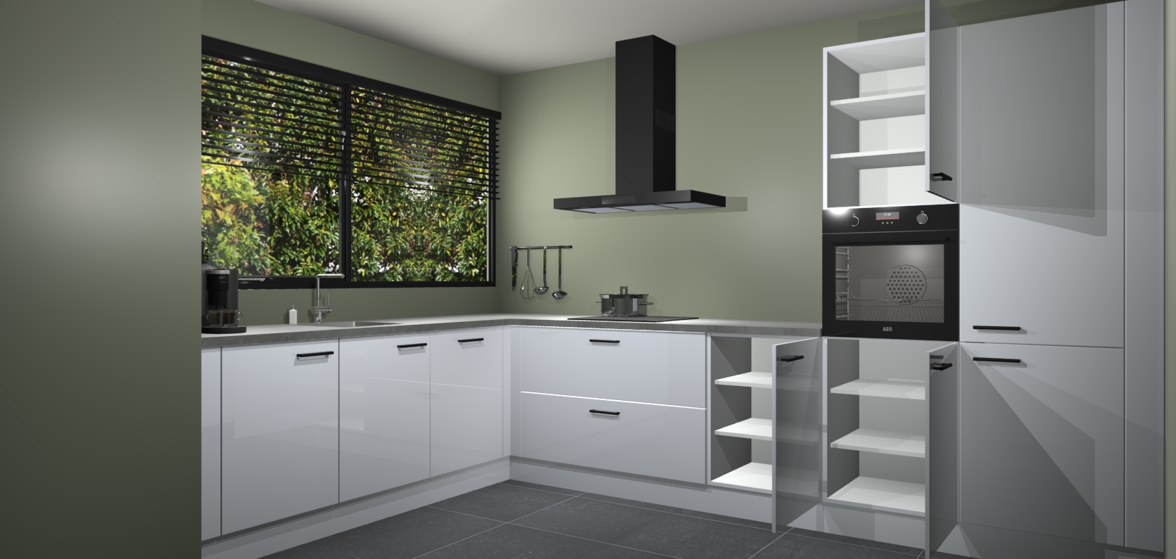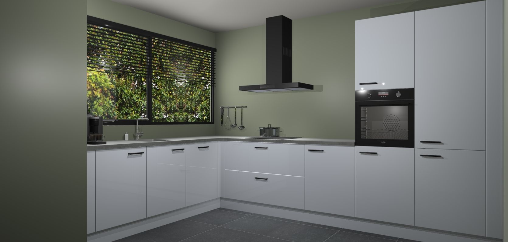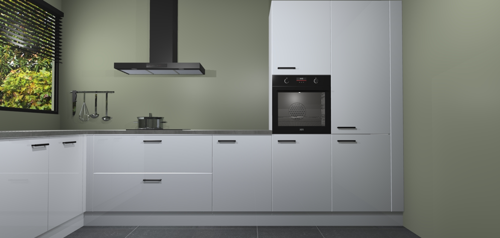 Met een modern, tijdloos design en ruime opslagruimte, zult u zich in no-time thuis voelen in uw nieuwe keuken. Uw leven wordt eenvoudiger met de soft-close deuren die voor het ultieme stille comfort zorgen - geen geluid dat u stoort terwijl u kookt. Ook is de keuken voorzien van 5 ingebouwde apparaten: een oven, inductie kookplaat, afzuigkap, vaatwasser en koelkast. Deze kunnen gemakkelijk na bestelling worden bijgewerkt naar AEG - waardoor uw luxe ervaring compleet is.
