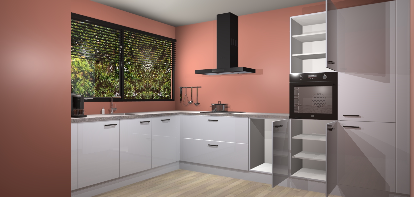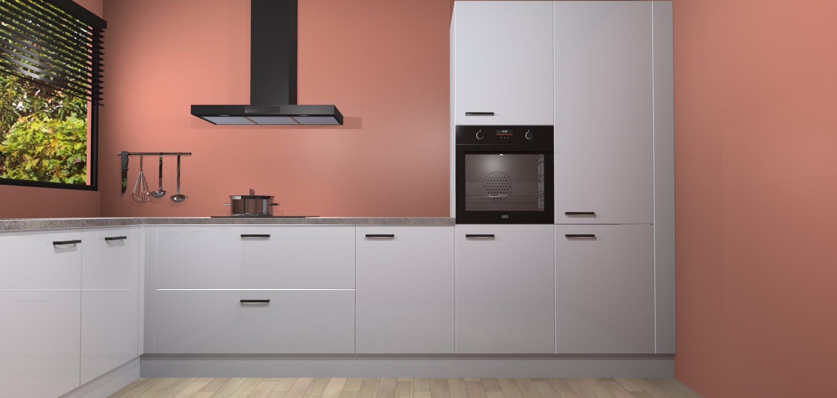 Met een modern, tijdloos design en ruime opslagruimte, zult u zich in no-time thuis voelen in uw nieuwe keuken. Uw leven wordt eenvoudiger met de soft-close deuren die voor het ultieme stille comfort zorgen - geen geluid dat u stoort terwijl u kookt. Ook is de keuken voorzien van 5 ingebouwde apparaten: een oven, inductie kookplaat, afzuigkap, vaatwasser en koelkast. Deze kunnen gemakkelijk na bestelling worden bijgewerkt naar AEG - waardoor uw luxe ervaring compleet is.
