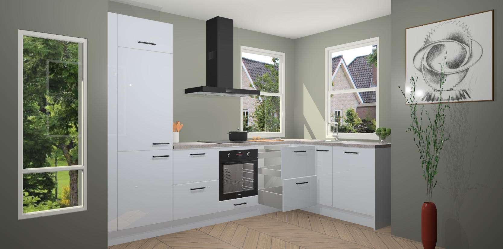 Welkom bij de Sneeuwwitte hoogglans keuken Salzburg! Met een chique combinatie van een prachtig houten werkblad, klassiek design en altijd concurrerende prijzen is de Sneeuwwitte hoogglans keuken Salzburg de keuken van uw dromen! Deze keuken is perfect voor alle huisformaten en decorstijlen en straalt stijl en verfijning uit. Van het tijdloze design tot de functionele functies, er is geen betere manier om de look van uw woon- of kookruimte te verbeteren.