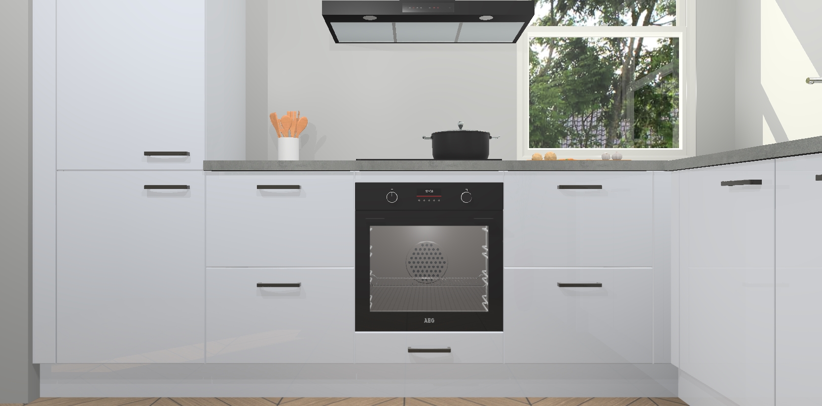 Wat maakt deze keuken zo bijzonder? Ten eerste geeft het houten werkblad uw ruimte een onmiskenbaar klassieke uitstraling. De natuurlijke afwerking roept warmte en elegantie op die nooit uit de mode zullen raken. Bovendien is het gemakkelijk schoon te houden en te onderhouden, zodat je er jarenlang plezier van kunt hebben. Als u op zoek bent naar extra gemak in uw keuken, dan heeft u bij het plaatsen van een bestelling bij ons ook de optie om uw toestellen te upgraden naar AEG-modellen - zo haalt u moderne innovatie van topmerken in apparatentechnologie rechtstreeks in huis.