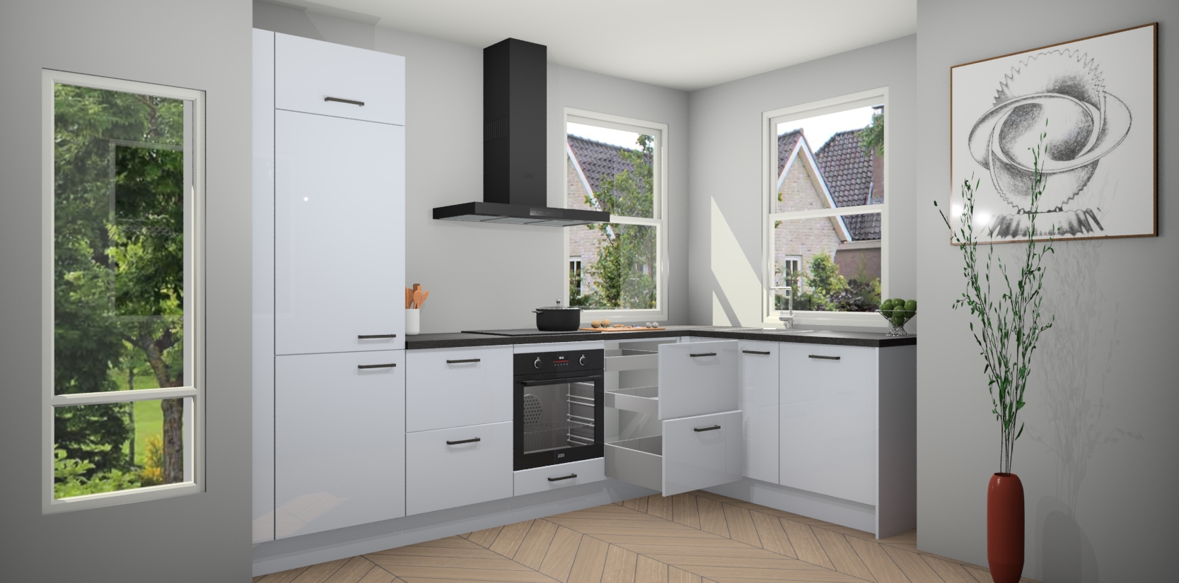 Welkom bij de Sneeuwwitte hoogglans keuken Salzburg! Met een chique combinatie van een prachtig houten werkblad, klassiek design en altijd concurrerende prijzen is de Sneeuwwitte hoogglans keuken Salzburg de keuken van uw dromen! Deze keuken is perfect voor alle huisformaten en decorstijlen en straalt stijl en verfijning uit. Van het tijdloze design tot de functionele functies, er is geen betere manier om de look van uw woon- of kookruimte te verbeteren.