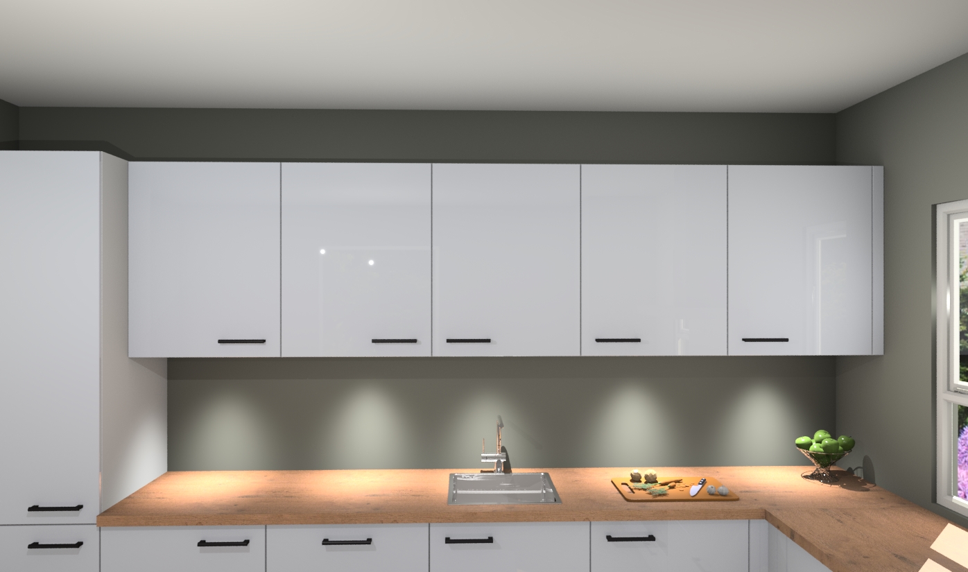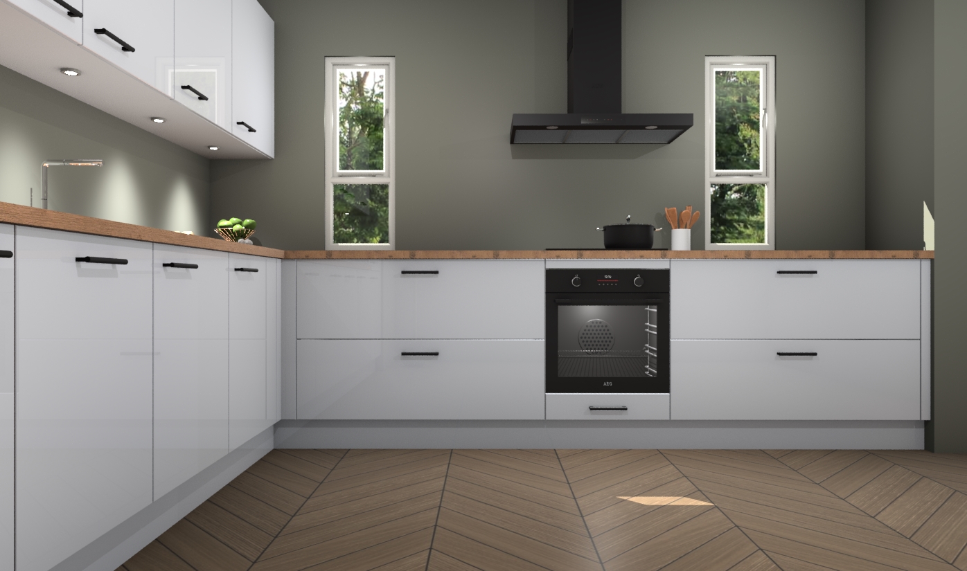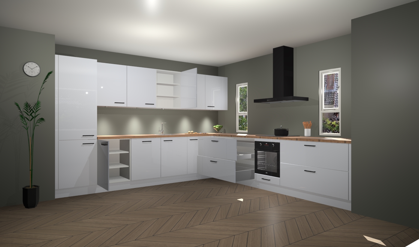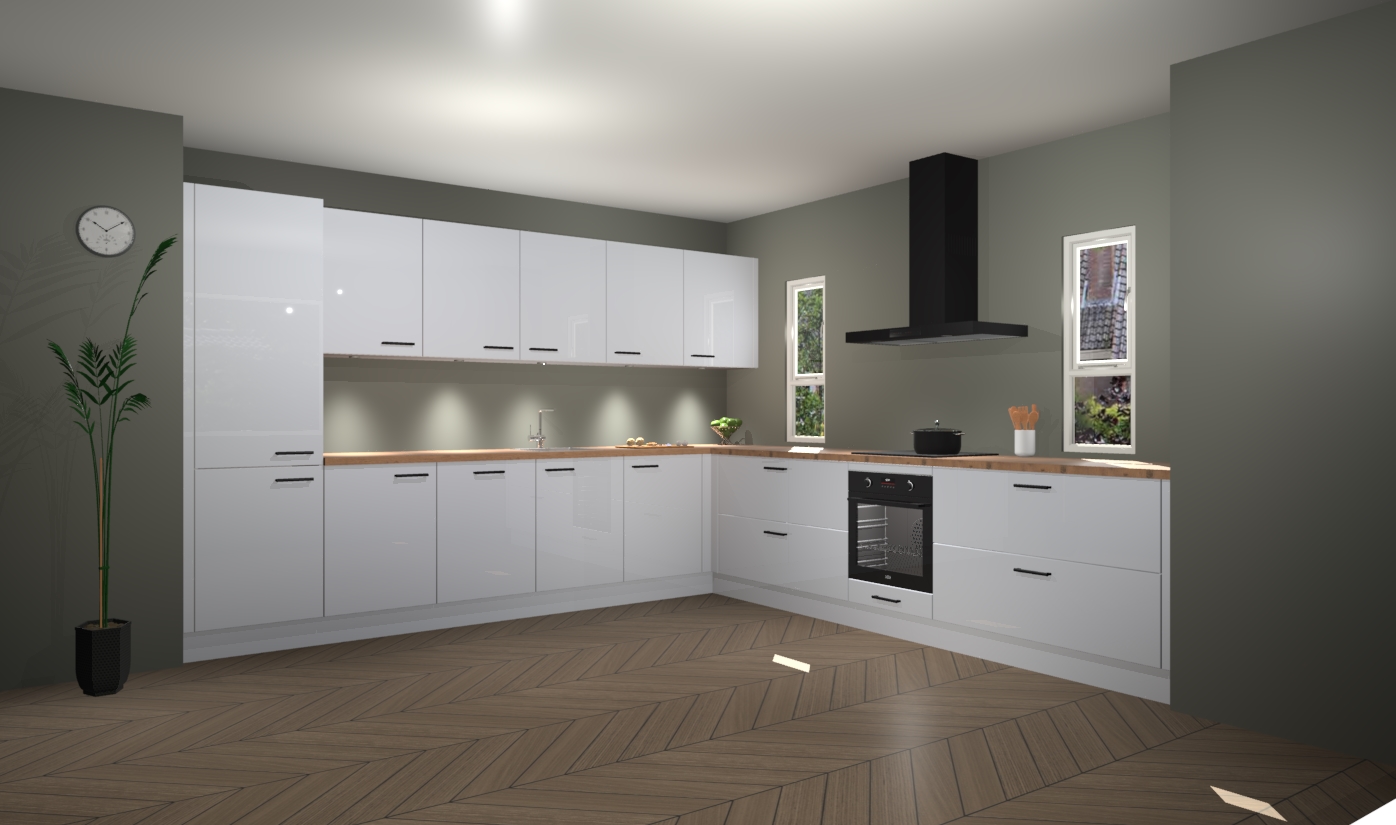 De sneeuwwitte hoogglans keuken is een ideale hoekkeuken en heeft alle functies en apparatuur die u maar nodig kunt hebben. Bij de bestelling krijgt u een oven, inductiekookplaat, afzuigkap, vaatwasser en koelkast - deze kunnen desgewenst eenvoudig worden uitgebreid naar AEG na bestellen. Elke kast wordt ook voor gemonteerd geleverd met soft close deuren die jarenlang gebruik beloven. Stelt u zich voor dat u geen gedoe heeft met vervelende montage - vanaf het moment dat u uw bestelling plaats, duurt het slechts 7 weken voor het bij u thuis geleverd wordt.