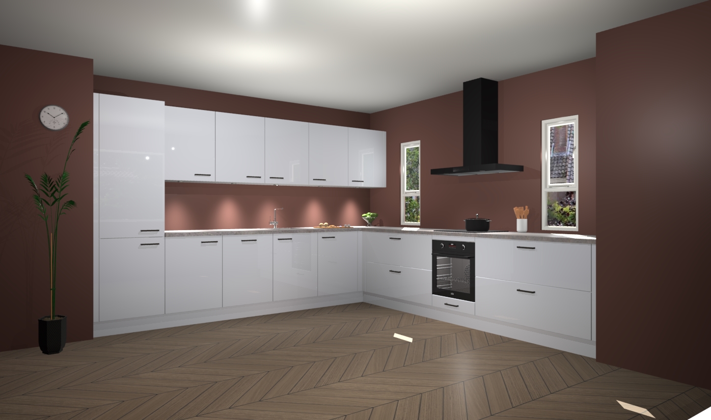 De sneeuwwitte hoogglans keuken is een ideale hoekkeuken en heeft alle functies en apparatuur die u maar nodig kunt hebben. Bij de bestelling krijgt u een oven, inductiekookplaat, afzuigkap, vaatwasser en koelkast - deze kunnen desgewenst eenvoudig worden uitgebreid naar AEG na bestellen. Elke kast wordt ook voor gemonteerd geleverd met soft close deuren die jarenlang gebruik beloven. Stelt u zich voor dat u geen gedoe heeft met vervelende montage - vanaf het moment dat u uw bestelling plaats, duurt het slechts 7 weken voor het bij u thuis geleverd wordt.