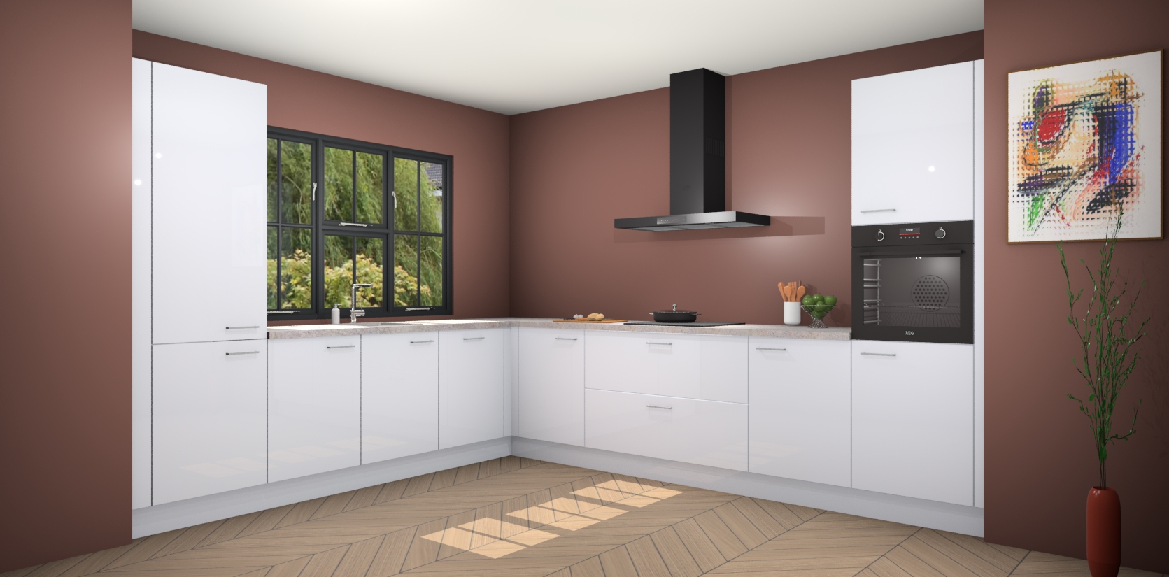 Maak kennis met de sneeuwwitte hoogglans keuken Tychy! Geniet van een keuken die er stijlvol uitziet in elk huis, terwijl u het gemak hebt van veel opbergruimte in dit moderne meesterwerk. Het hoogglans ontwerp geeft een glanzende, heldere afwerking die de helderheid verhoogt en een element van luxe toevoegt aan uw keukenomgeving.