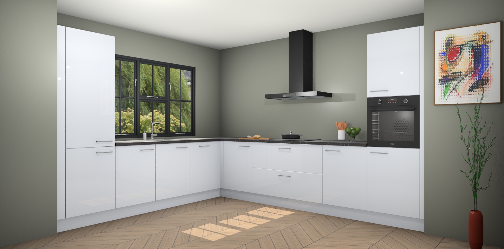 Maak kennis met de sneeuwwitte hoogglans keuken Tychy! Geniet van een keuken die er stijlvol uitziet in elk huis, terwijl u het gemak hebt van veel opbergruimte in dit moderne meesterwerk. Het hoogglans ontwerp geeft een glanzende, heldere afwerking die de helderheid verhoogt en een element van luxe toevoegt aan uw keukenomgeving.