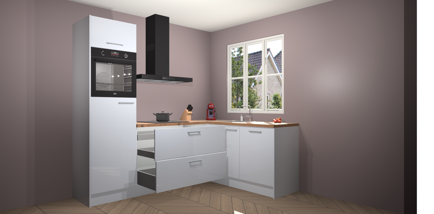 Dit model biedt u voldoende opbergruimte en vijf ingebouwde apparaten: een oven, inductiekookplaat, afzuigkap, vaatwasser en koelkast. Deze apparaten kunnen gemakkelijk worden geüpgrade naar AEG nadat u besteld heeft. De verschillende laden en kastjes bevatten softclose-deuren waardoor ze gezellig dichtvallen met een geruststellend helemaal geruisloos geluid. En dat is nog niet alles! We garanderen ook dat de prijs altijd laag blijft - dus haal nu uw Sneeuwwitte hoogglans keuken Victoria terwijl het kan.
