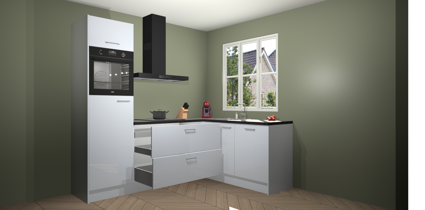 Dit model biedt u voldoende opbergruimte en vijf ingebouwde apparaten: een oven, inductiekookplaat, afzuigkap, vaatwasser en koelkast. Deze apparaten kunnen gemakkelijk worden geüpgrade naar AEG nadat u besteld heeft. De verschillende laden en kastjes bevatten softclose-deuren waardoor ze gezellig dichtvallen met een geruststellend helemaal geruisloos geluid. En dat is nog niet alles! We garanderen ook dat de prijs altijd laag blijft - dus haal nu uw Sneeuwwitte hoogglans keuken Victoria terwijl het kan.