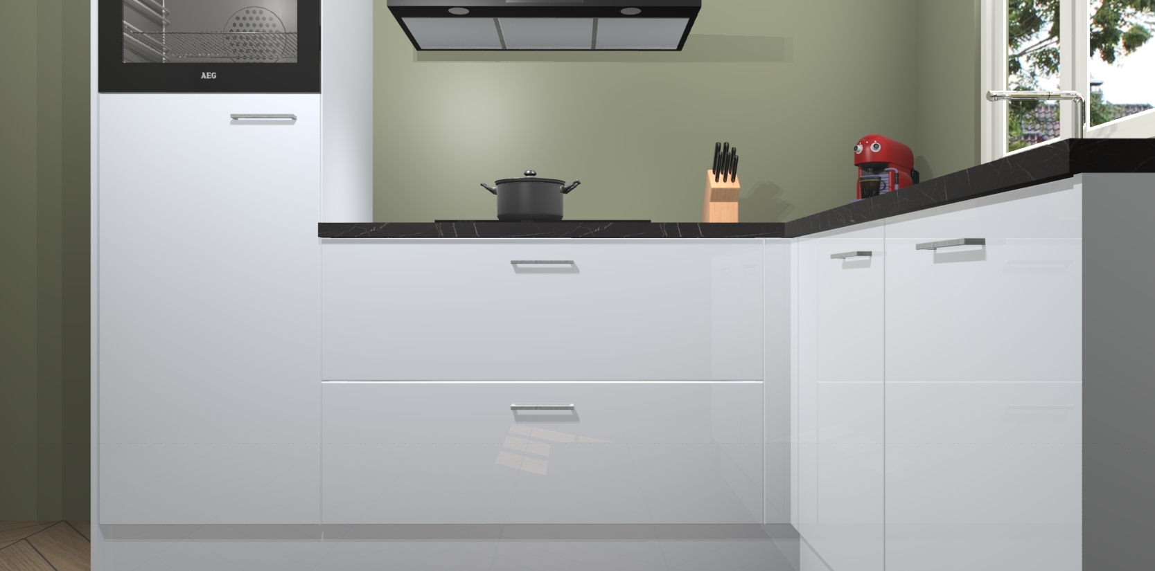 Dit model biedt u voldoende opbergruimte en vijf ingebouwde apparaten: een oven, inductiekookplaat, afzuigkap, vaatwasser en koelkast. Deze apparaten kunnen gemakkelijk worden geüpgrade naar AEG nadat u besteld heeft. De verschillende laden en kastjes bevatten softclose-deuren waardoor ze gezellig dichtvallen met een geruststellend helemaal geruisloos geluid. En dat is nog niet alles! We garanderen ook dat de prijs altijd laag blijft - dus haal nu uw Sneeuwwitte hoogglans keuken Victoria terwijl het kan.