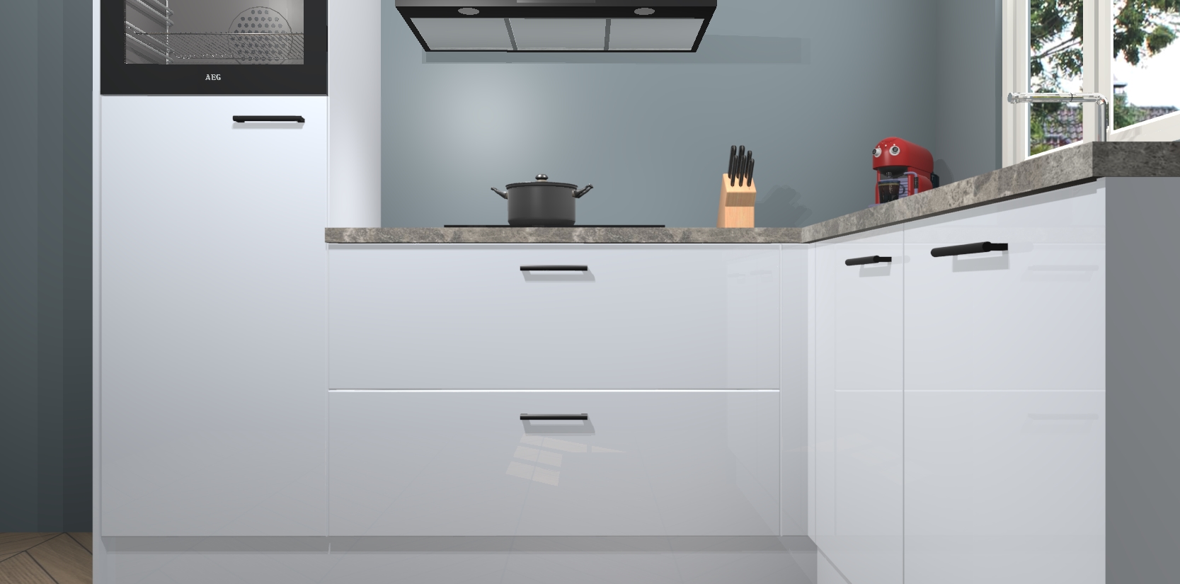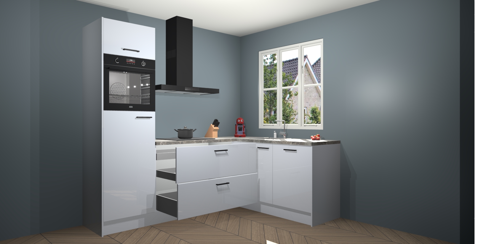 Dit model biedt u voldoende opbergruimte en vijf ingebouwde apparaten: een oven, inductiekookplaat, afzuigkap, vaatwasser en koelkast. Deze apparaten kunnen gemakkelijk worden geüpgrade naar AEG nadat u besteld heeft. De verschillende laden en kastjes bevatten softclose-deuren waardoor ze gezellig dichtvallen met een geruststellend helemaal geruisloos geluid. En dat is nog niet alles! We garanderen ook dat de prijs altijd laag blijft - dus haal nu uw Sneeuwwitte hoogglans keuken Victoria terwijl het kan.