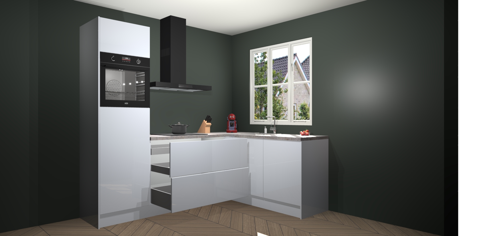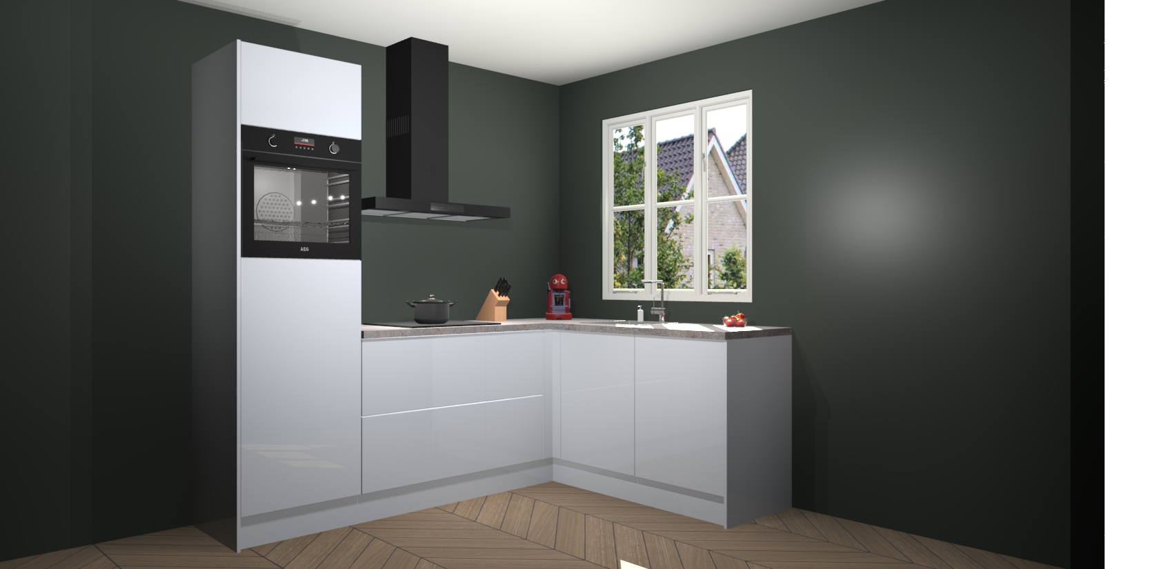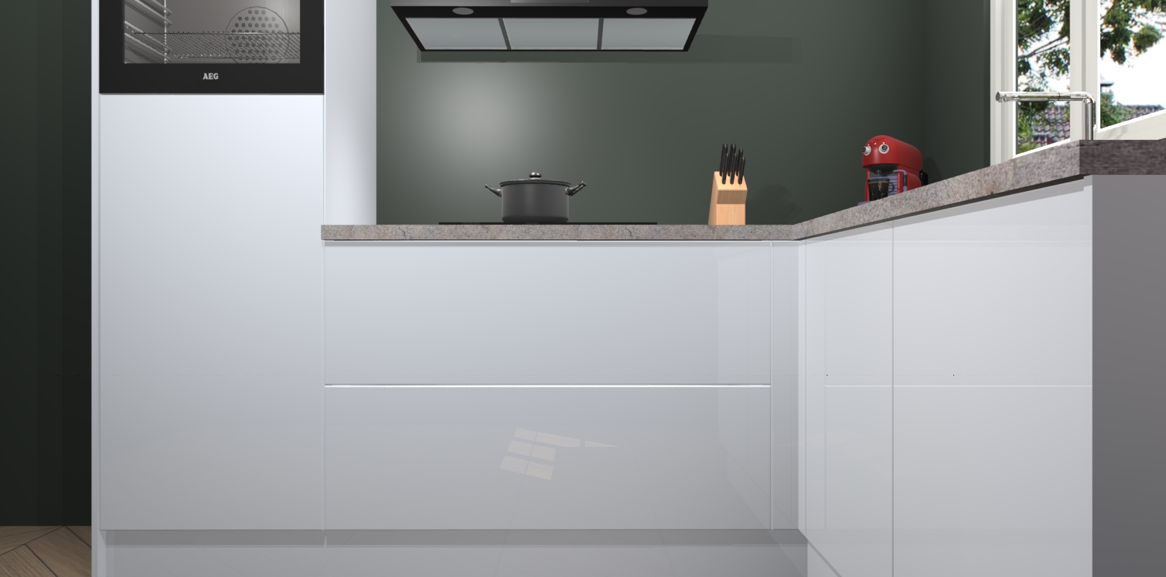 Dit model biedt u voldoende opbergruimte en vijf ingebouwde apparaten: een oven, inductiekookplaat, afzuigkap, vaatwasser en koelkast. Deze apparaten kunnen gemakkelijk worden geüpgrade naar AEG nadat u besteld heeft. De verschillende laden en kastjes bevatten softclose-deuren waardoor ze gezellig dichtvallen met een geruststellend helemaal geruisloos geluid. En dat is nog niet alles! We garanderen ook dat de prijs altijd laag blijft - dus haal nu uw Sneeuwwitte hoogglans keuken Victoria terwijl het kan.