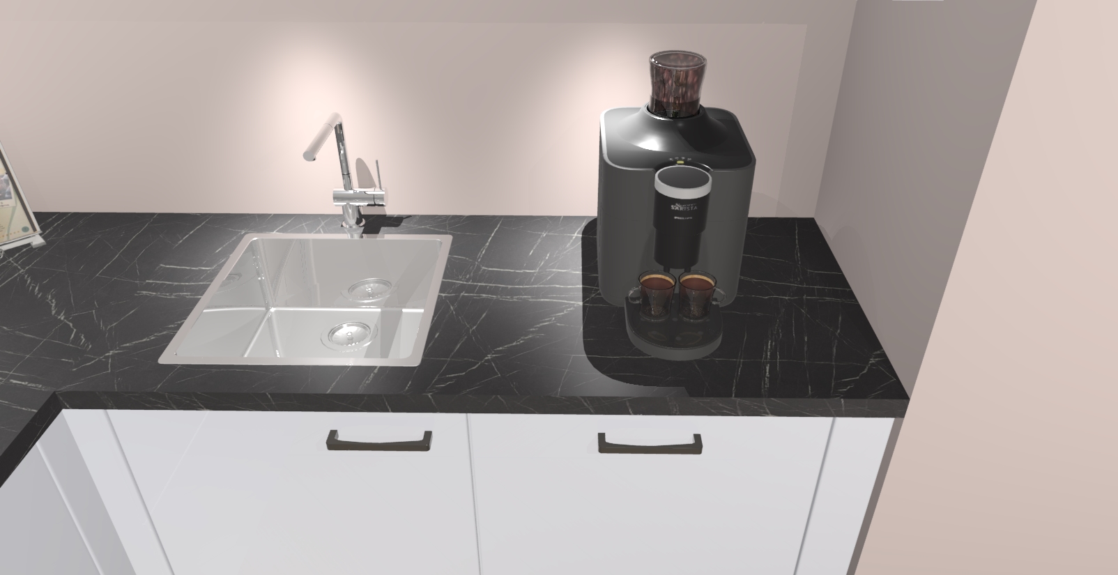 - De spoelbak is nog niet in gevreesd. Dit dient tijdens het werk gedaan te worden