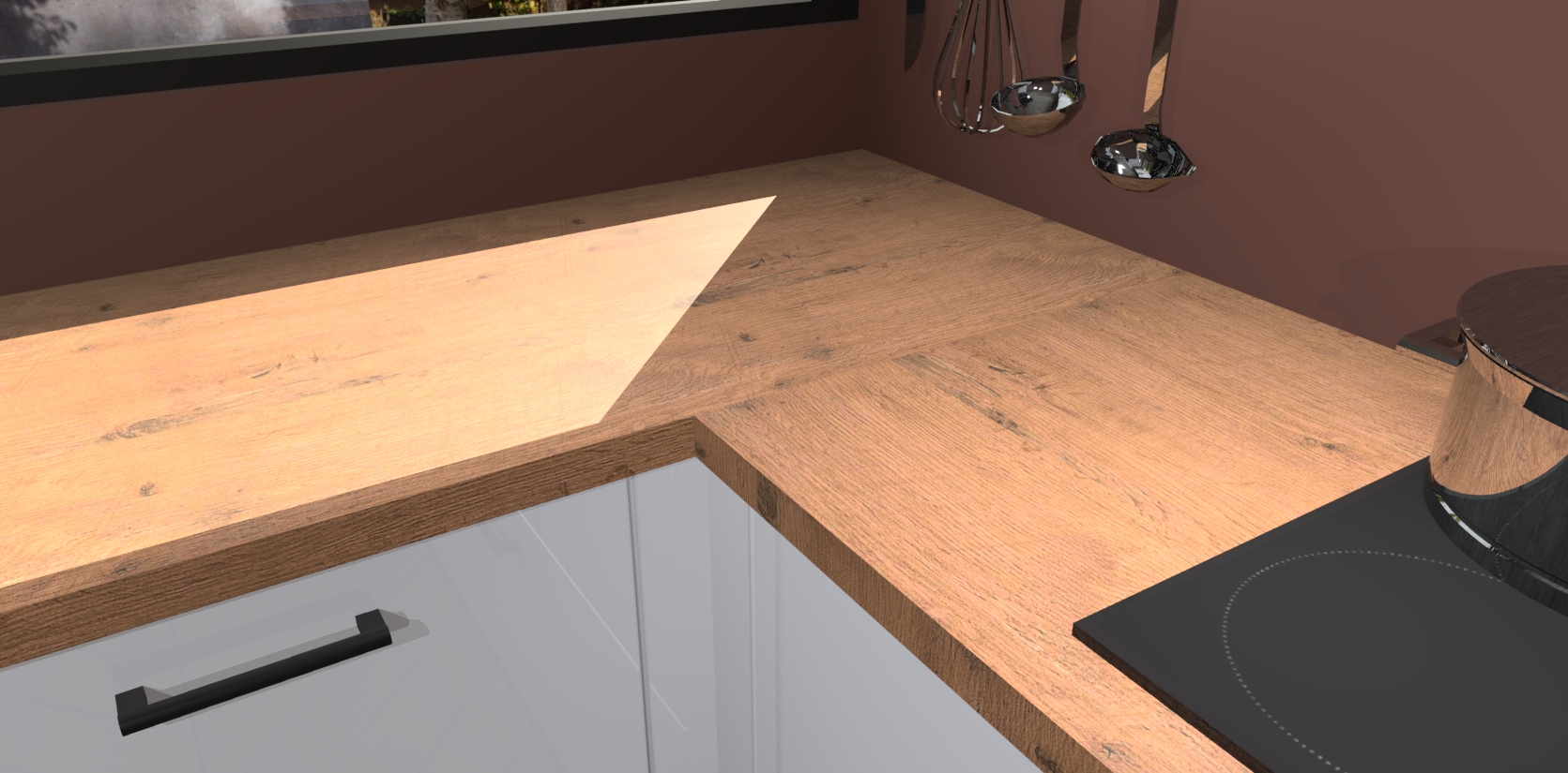- Bij een hoekwerkblad zijn de hoeken in gevreesd en op maat gemaakt