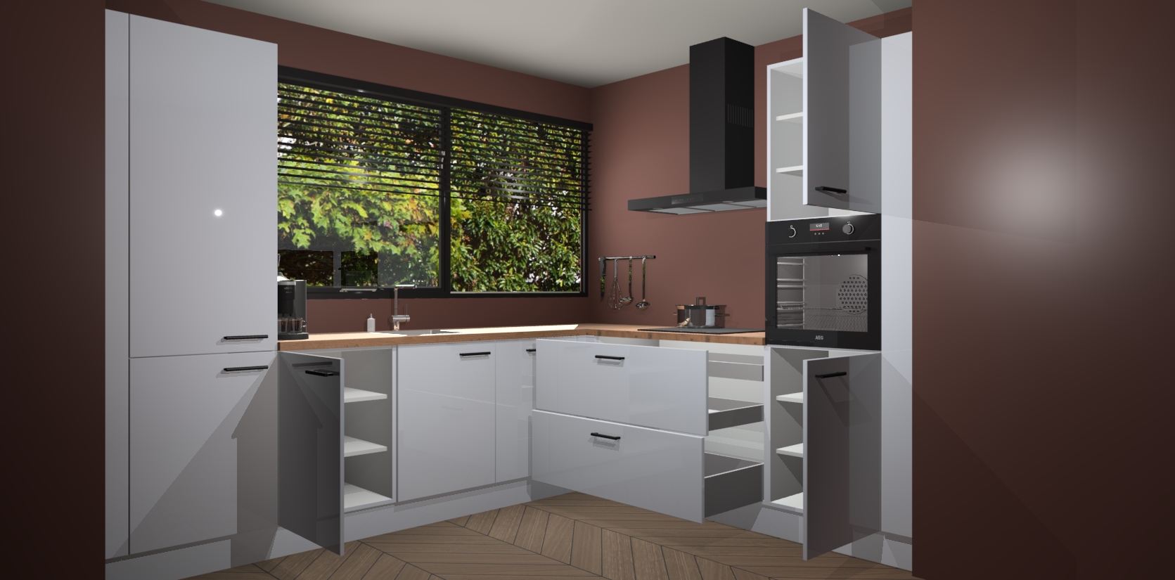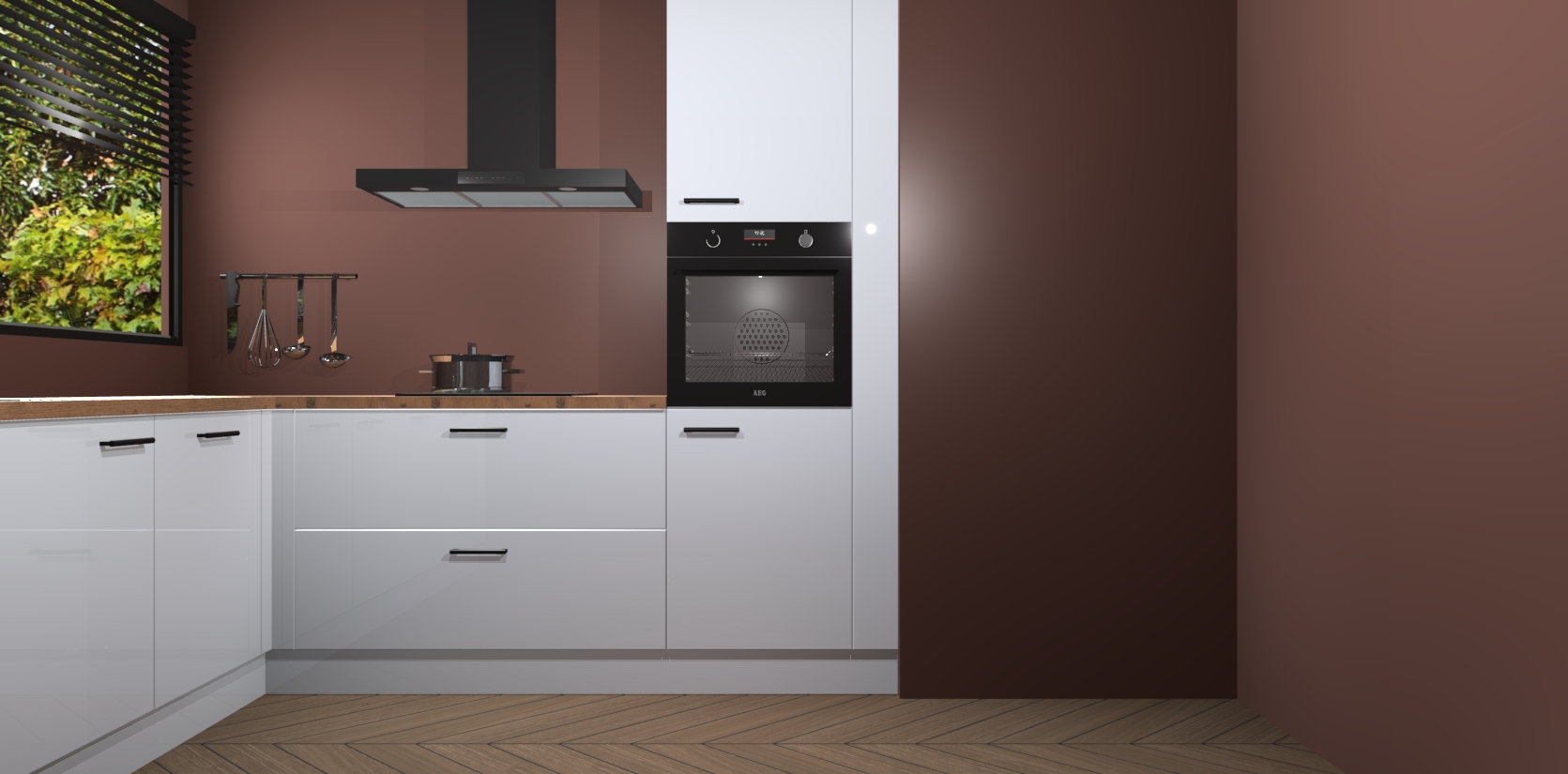 Met een modern, tijdloos design en ruime opslagruimte, zult u zich in no-time thuis voelen in uw nieuwe keuken. Uw leven wordt eenvoudiger met de soft-close deuren die voor het ultieme stille comfort zorgen - geen geluid dat u stoort terwijl u kookt. Ook is de keuken voorzien van 5 ingebouwde apparaten: een oven, inductie kookplaat, afzuigkap, vaatwasser en koelkast. Deze kunnen gemakkelijk na bestelling worden bijgewerkt naar AEG - waardoor uw luxe ervaring compleet is.