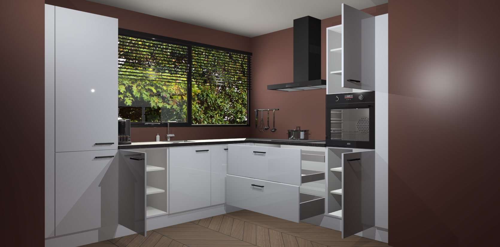 Met een modern, tijdloos design en ruime opslagruimte, zult u zich in no-time thuis voelen in uw nieuwe keuken. Uw leven wordt eenvoudiger met de soft-close deuren die voor het ultieme stille comfort zorgen - geen geluid dat u stoort terwijl u kookt. Ook is de keuken voorzien van 5 ingebouwde apparaten: een oven, inductie kookplaat, afzuigkap, vaatwasser en koelkast. Deze kunnen gemakkelijk na bestelling worden bijgewerkt naar AEG - waardoor uw luxe ervaring compleet is.