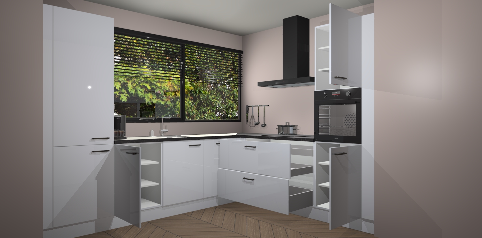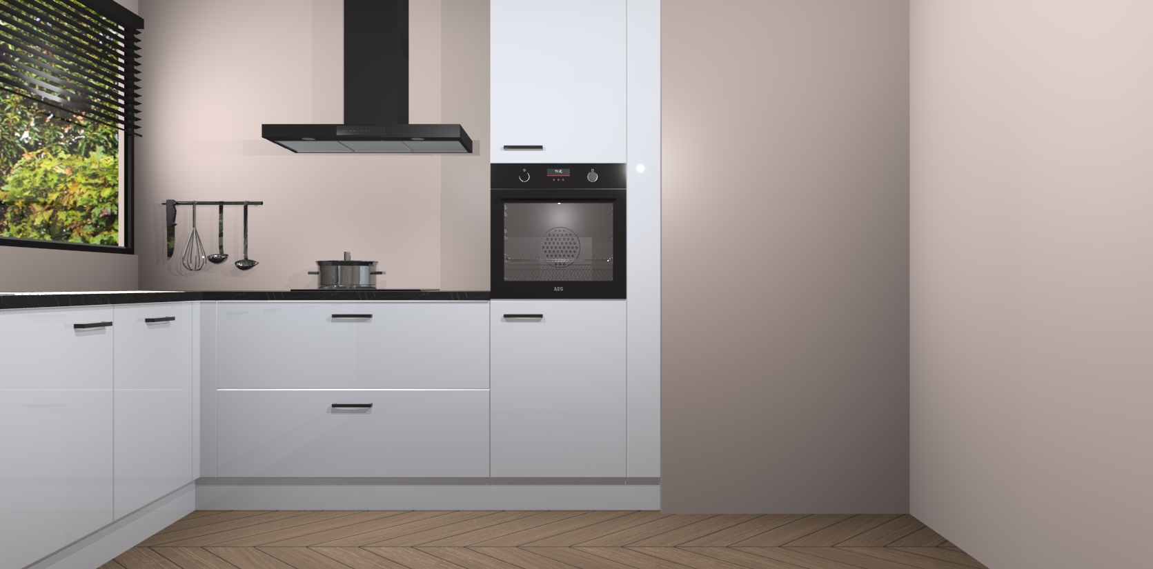 Met een modern, tijdloos design en ruime opslagruimte, zult u zich in no-time thuis voelen in uw nieuwe keuken. Uw leven wordt eenvoudiger met de soft-close deuren die voor het ultieme stille comfort zorgen - geen geluid dat u stoort terwijl u kookt. Ook is de keuken voorzien van 5 ingebouwde apparaten: een oven, inductie kookplaat, afzuigkap, vaatwasser en koelkast. Deze kunnen gemakkelijk na bestelling worden bijgewerkt naar AEG - waardoor uw luxe ervaring compleet is.