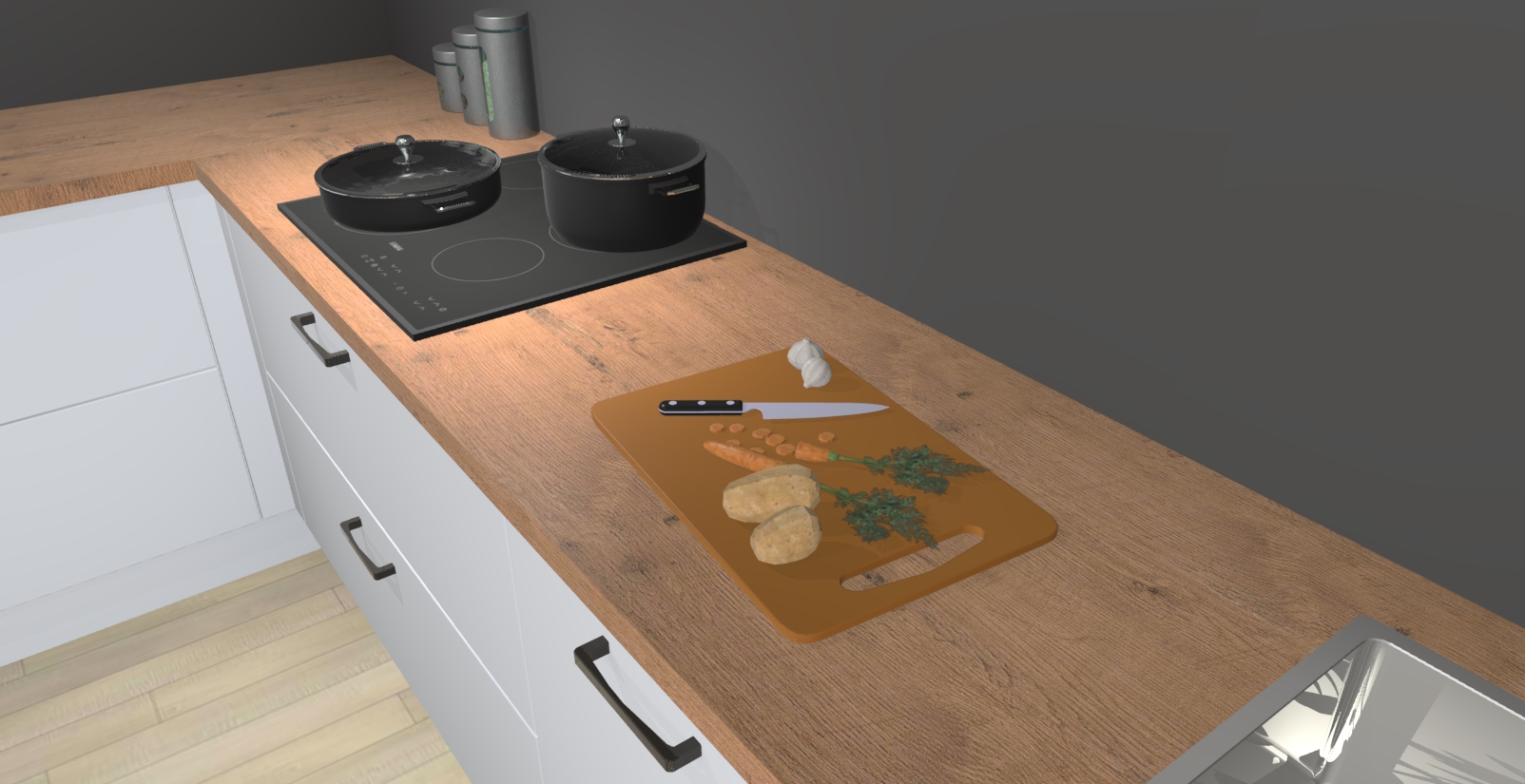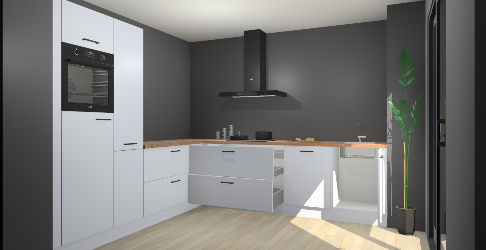 Inclusief plinten, stelpoten en werkblad