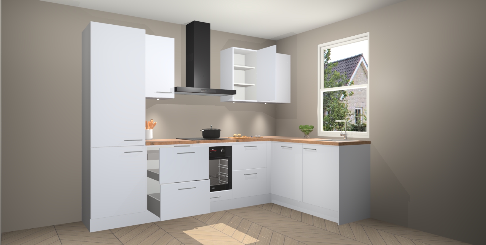 In deze box zijn alle kleuren verzameld van de deuren en werkbladen. Vraag de gratis kleurenbox aan en kijk thuis rustig verder!