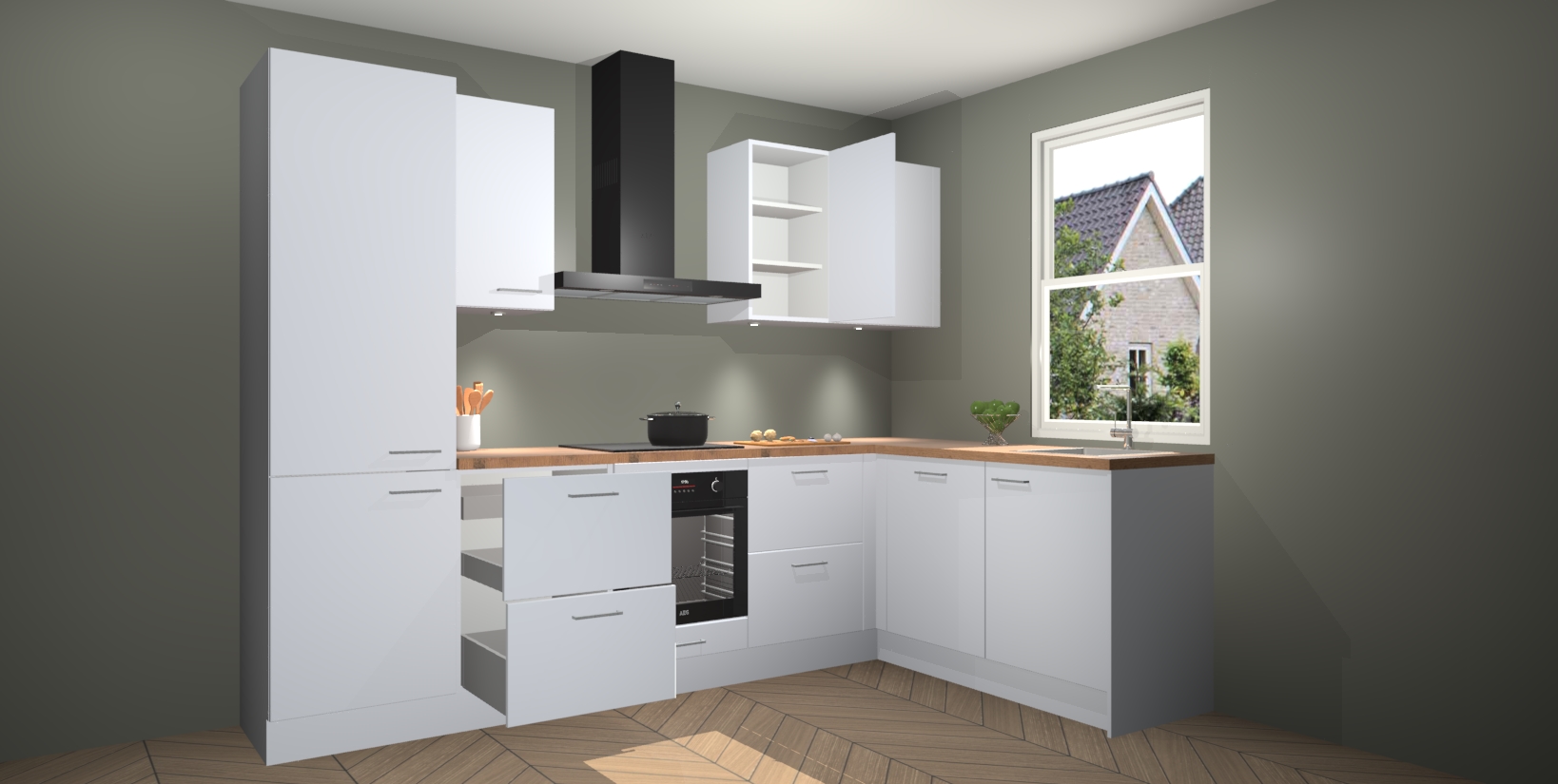 In deze box zijn alle kleuren verzameld van de deuren en werkbladen. Vraag de gratis kleurenbox aan en kijk thuis rustig verder!