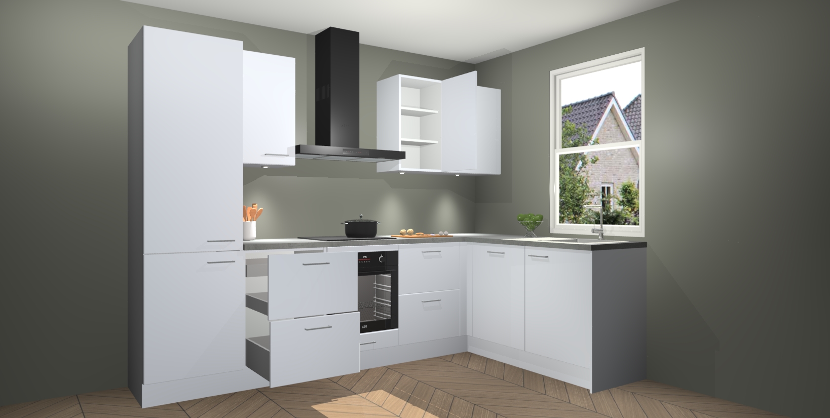 Maak kennis met de trendsettende en luxe Sneeuwwitte keuken Bazel! Deze uitzonderlijke keuken van Duitse kwaliteit is stijlvol, modern en perfect om elk huis mee op te fleuren. De binnenkant van de kasten worden meegenomen in een bijpassende kleur om een samenhangende eigentijdse esthetiek te voltooien. U zult dol zijn op hoe uw pas gerenoveerde keuken eruitziet met de Sneeuwwitte editie!