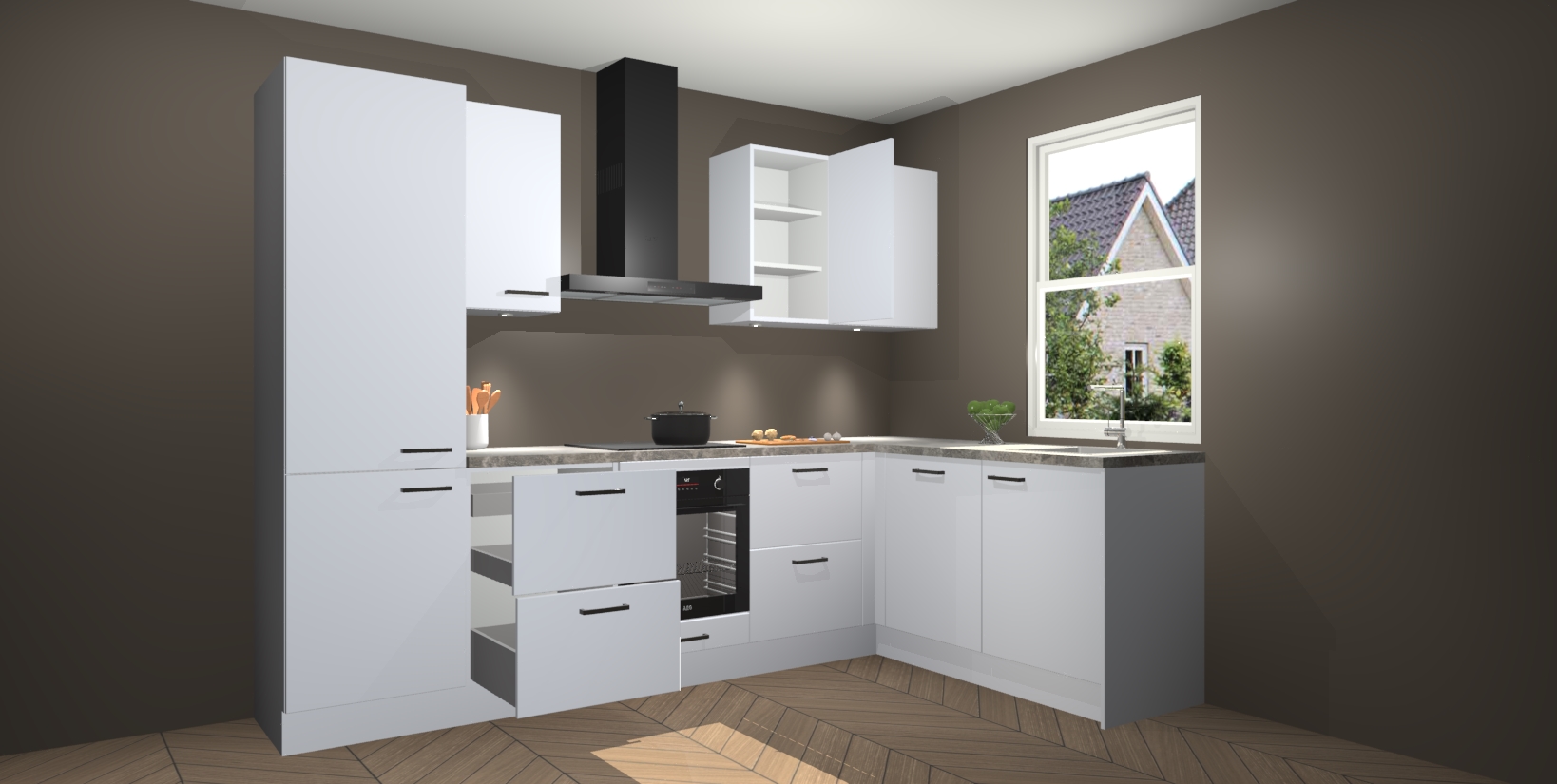 Maak kennis met de trendsettende en luxe Sneeuwwitte keuken Bazel! Deze uitzonderlijke keuken van Duitse kwaliteit is stijlvol, modern en perfect om elk huis mee op te fleuren. De binnenkant van de kasten worden meegenomen in een bijpassende kleur om een samenhangende eigentijdse esthetiek te voltooien. U zult dol zijn op hoe uw pas gerenoveerde keuken eruitziet met de Sneeuwwitte editie!