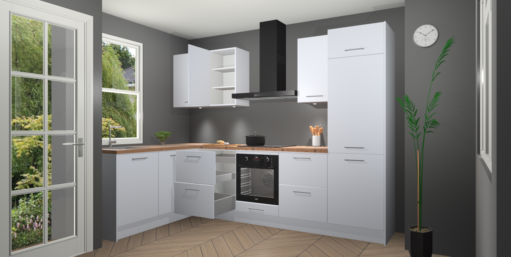 Bent u op zoek naar een strakke, moderne hoekkeuken die uw huis oppept en een moderne uitstraling geeft? Kijk dan niet verder dan de sneeuwwitte keuken Beijing. Deze verbluffende hoekkeuken tilt hedendaags design naar een hoger niveau. Qua stijl is deze chique hoekkeuken voorzien van sneeuwwitte accenten, om een strakke maar opvallende look te creëren. De binnenkant van de kasten is afgewerkt in dezelfde prachtige sneeuwwitte kleur voor extra esthetische aantrekkingskracht.
