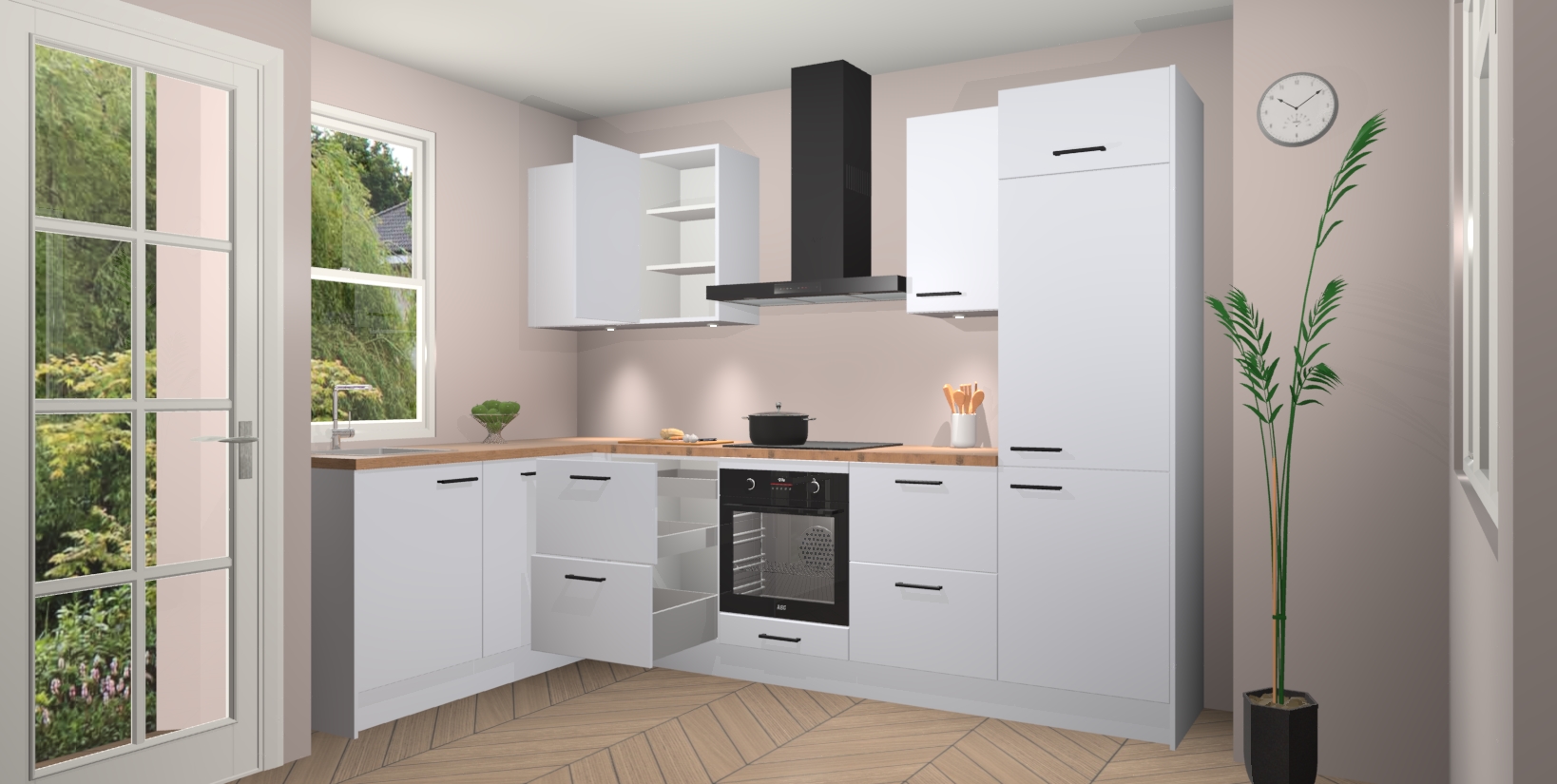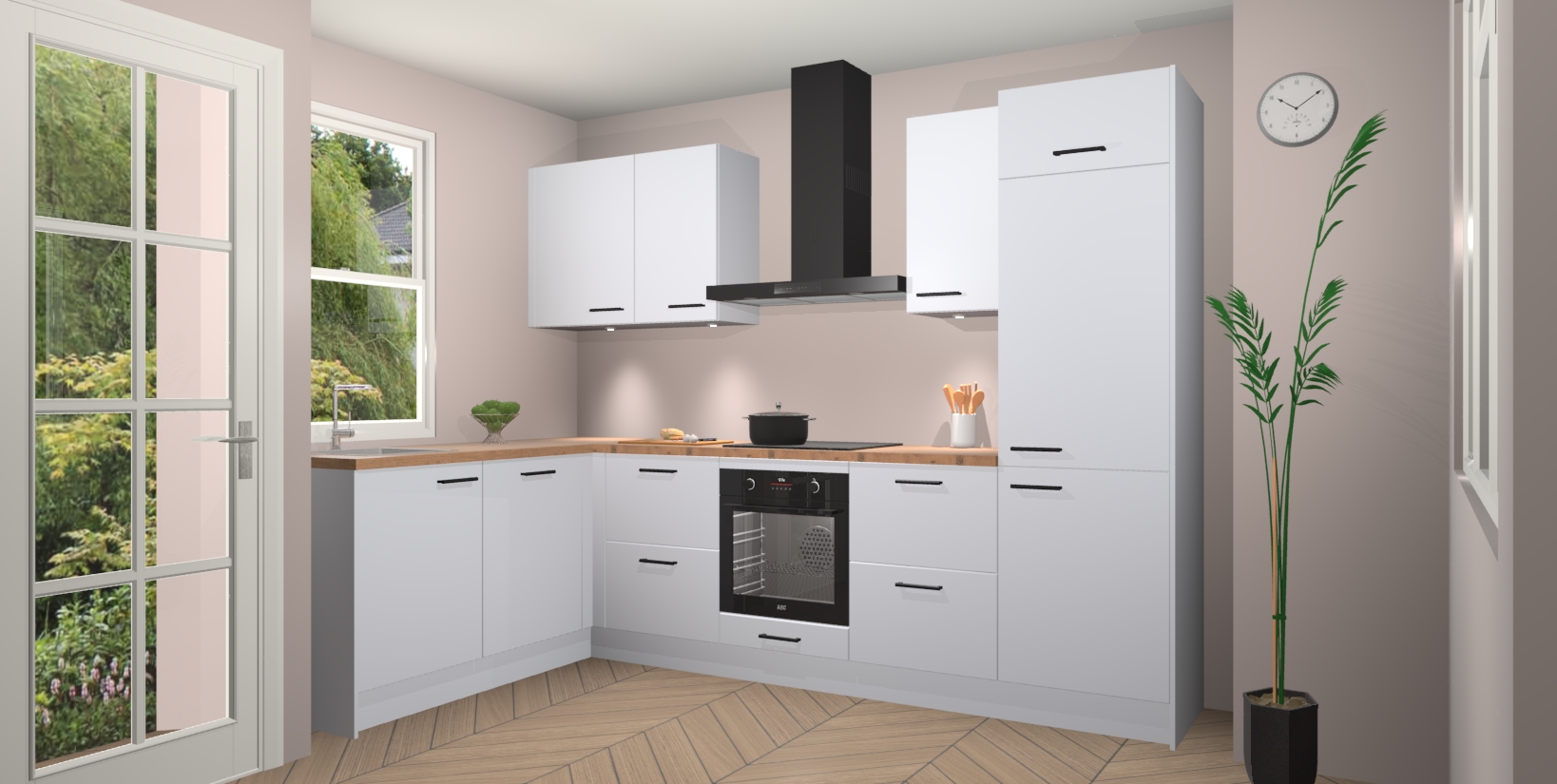 Bent u op zoek naar een strakke, moderne hoekkeuken die uw huis oppept en een moderne uitstraling geeft? Kijk dan niet verder dan de sneeuwwitte keuken Beijing. Deze verbluffende hoekkeuken tilt hedendaags design naar een hoger niveau. Qua stijl is deze chique hoekkeuken voorzien van sneeuwwitte accenten, om een strakke maar opvallende look te creëren. De binnenkant van de kasten is afgewerkt in dezelfde prachtige sneeuwwitte kleur voor extra esthetische aantrekkingskracht.