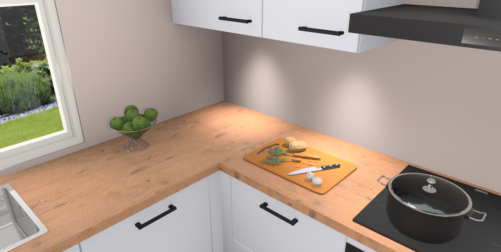 - Bij een hoekwerkblad zijn de hoeken in gevreesd en op maat gemaakt