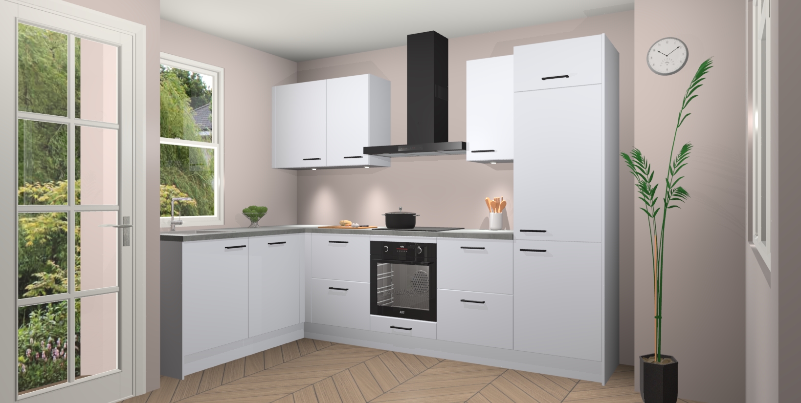 U hoeft zich ook geen zorgen te maken over een gebrek aan opbergruimte, want deze keuken heeft voldoende opbergmogelijkheden zowel boven als onder het aanrecht. Om het leven nog makkelijker te maken, wordt deze moderne hoekkeuken geleverd met 5 ingebouwde apparaten, waaronder een oven, inductiekookplaat, afzuigkap, vaatwasser en koelkast, zodat u in een mum van tijd klaar bent voor actie!