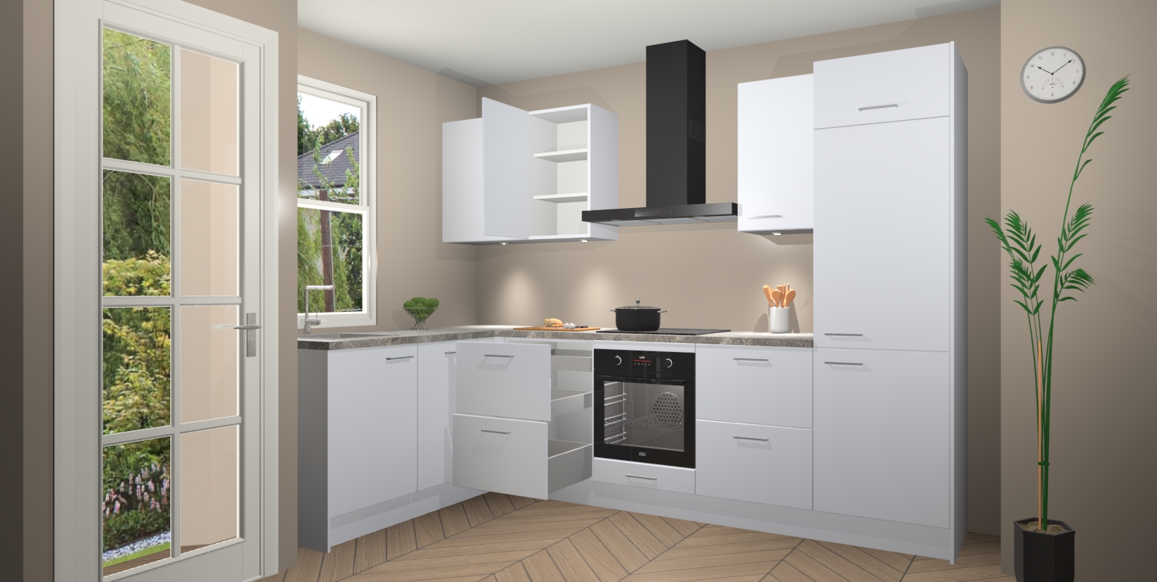 Bent u op zoek naar een strakke, moderne hoekkeuken die uw huis oppept en een moderne uitstraling geeft? Kijk dan niet verder dan de sneeuwwitte keuken Beijing. Deze verbluffende hoekkeuken tilt hedendaags design naar een hoger niveau. Qua stijl is deze chique hoekkeuken voorzien van sneeuwwitte accenten, om een strakke maar opvallende look te creëren. De binnenkant van de kasten is afgewerkt in dezelfde prachtige sneeuwwitte kleur voor extra esthetische aantrekkingskracht.