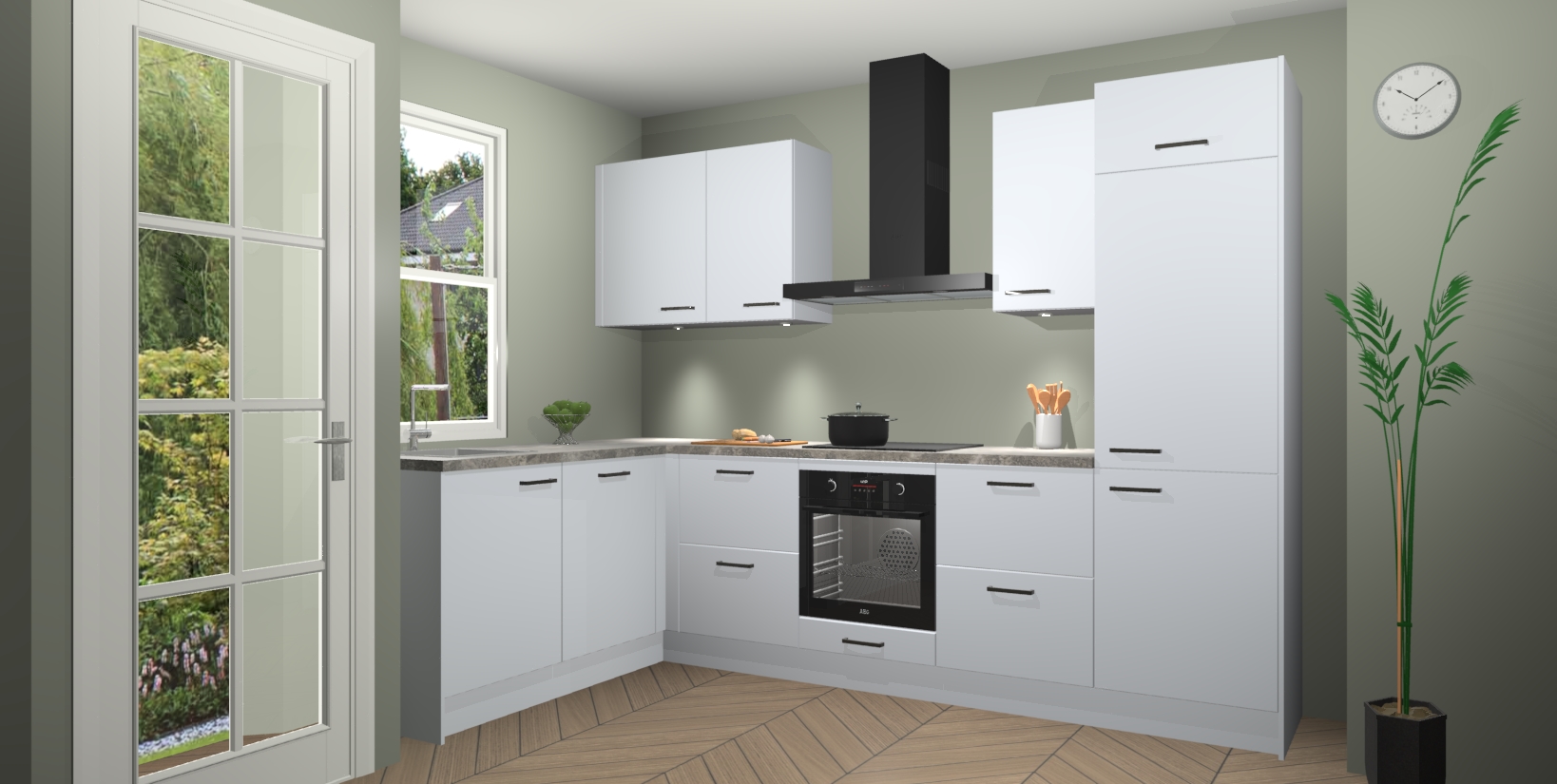 U hoeft zich ook geen zorgen te maken over een gebrek aan opbergruimte, want deze keuken heeft voldoende opbergmogelijkheden zowel boven als onder het aanrecht. Om het leven nog makkelijker te maken, wordt deze moderne hoekkeuken geleverd met 5 ingebouwde apparaten, waaronder een oven, inductiekookplaat, afzuigkap, vaatwasser en koelkast, zodat u in een mum van tijd klaar bent voor actie!