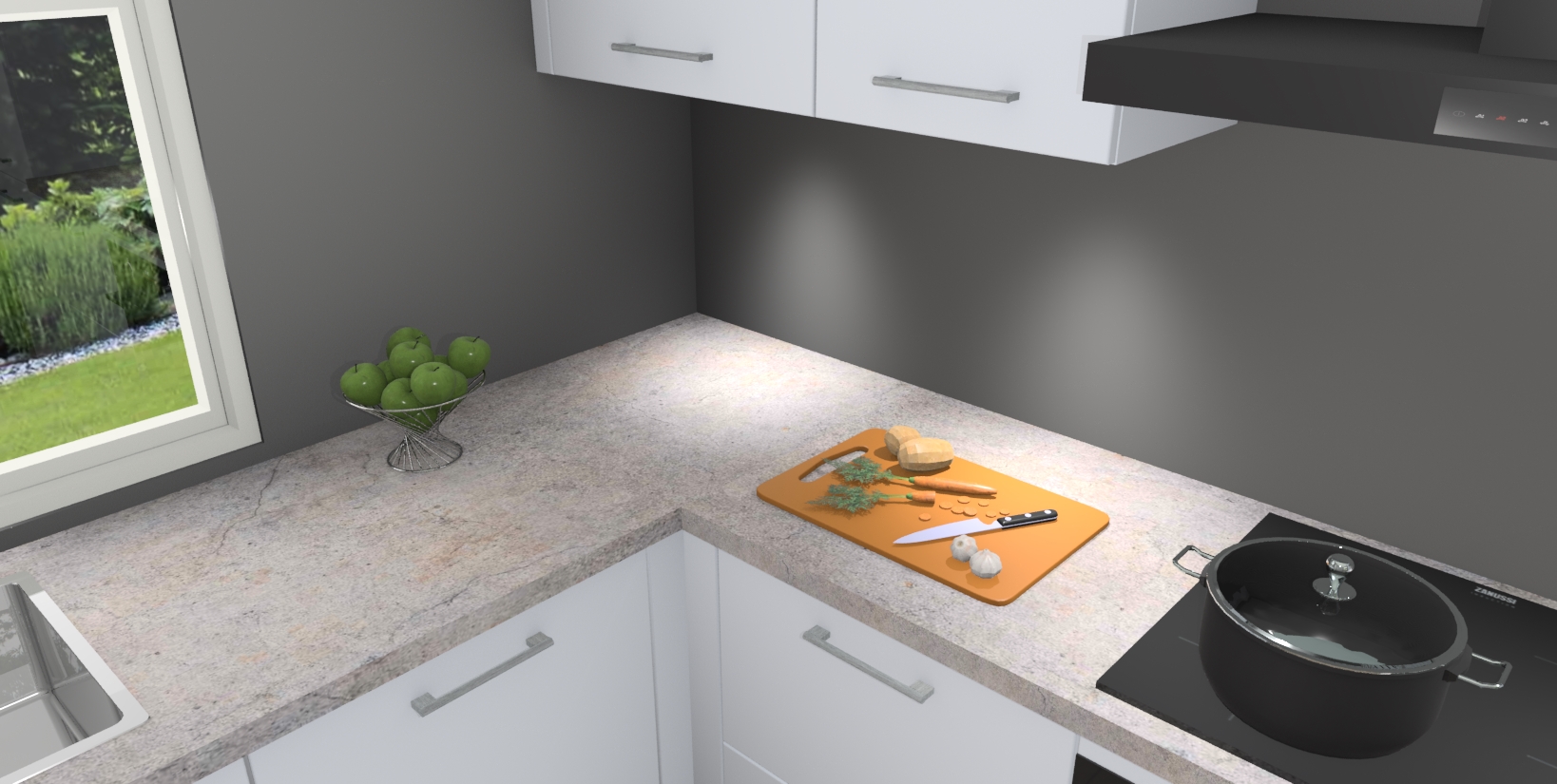 - Bij een hoekwerkblad zijn de hoeken in gevreesd en op maat gemaakt