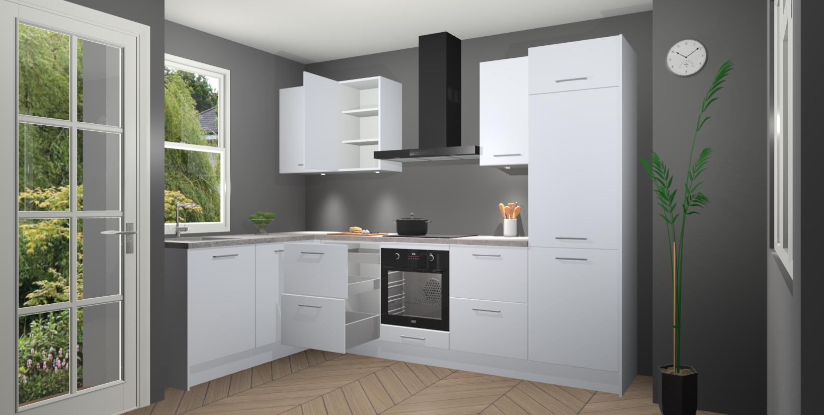 Bent u op zoek naar een strakke, moderne hoekkeuken die uw huis oppept en een moderne uitstraling geeft? Kijk dan niet verder dan de sneeuwwitte keuken Beijing. Deze verbluffende hoekkeuken tilt hedendaags design naar een hoger niveau. Qua stijl is deze chique hoekkeuken voorzien van sneeuwwitte accenten, om een strakke maar opvallende look te creëren. De binnenkant van de kasten is afgewerkt in dezelfde prachtige sneeuwwitte kleur voor extra esthetische aantrekkingskracht.