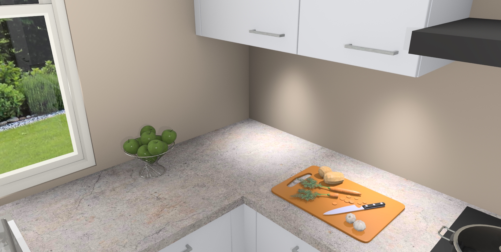 - Bij een hoekwerkblad zijn de hoeken in gevreesd en op maat gemaakt