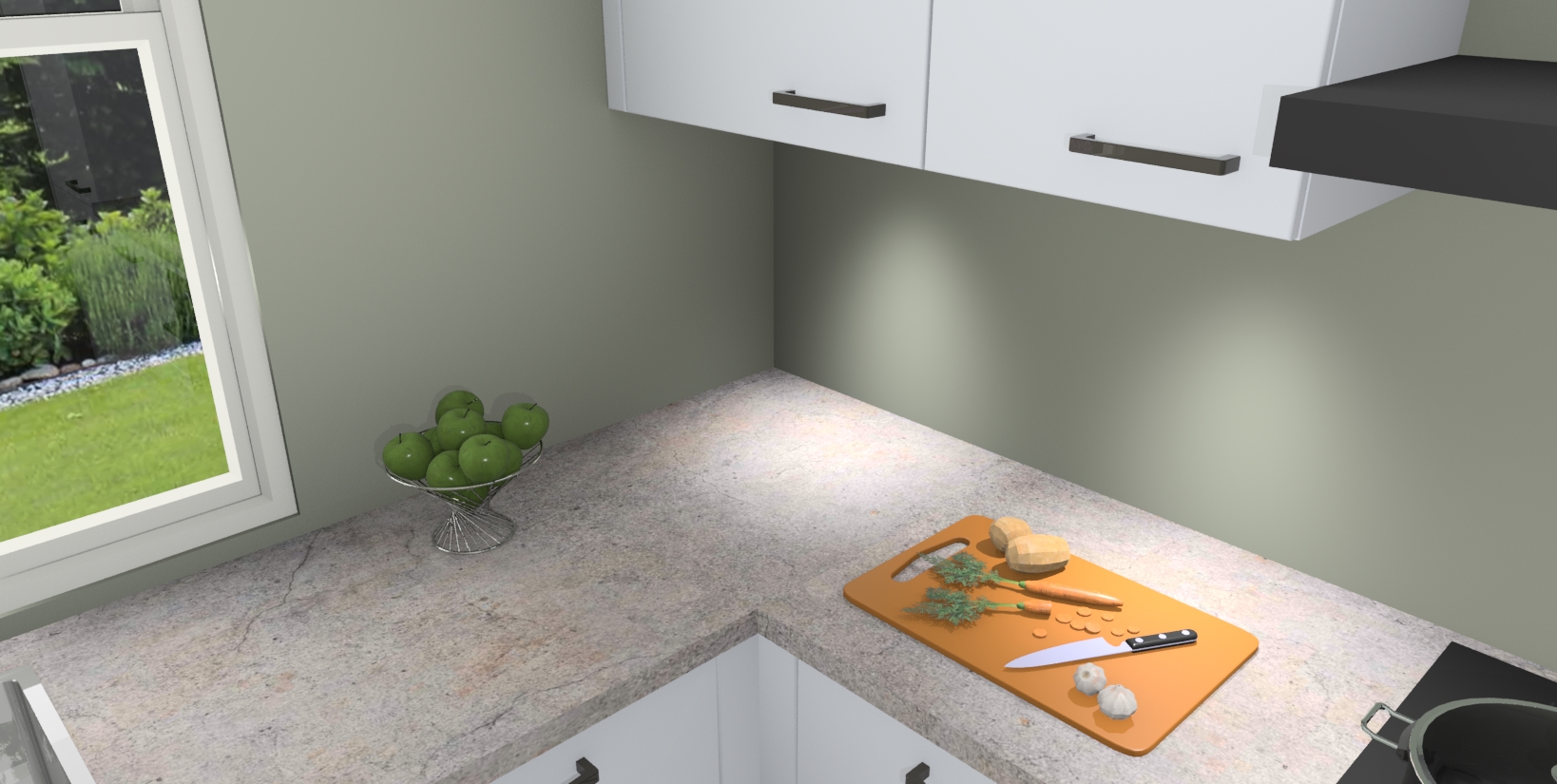 • Bij een hoekwerkblad zijn de hoeken in gevreesd en op maat gemaakt