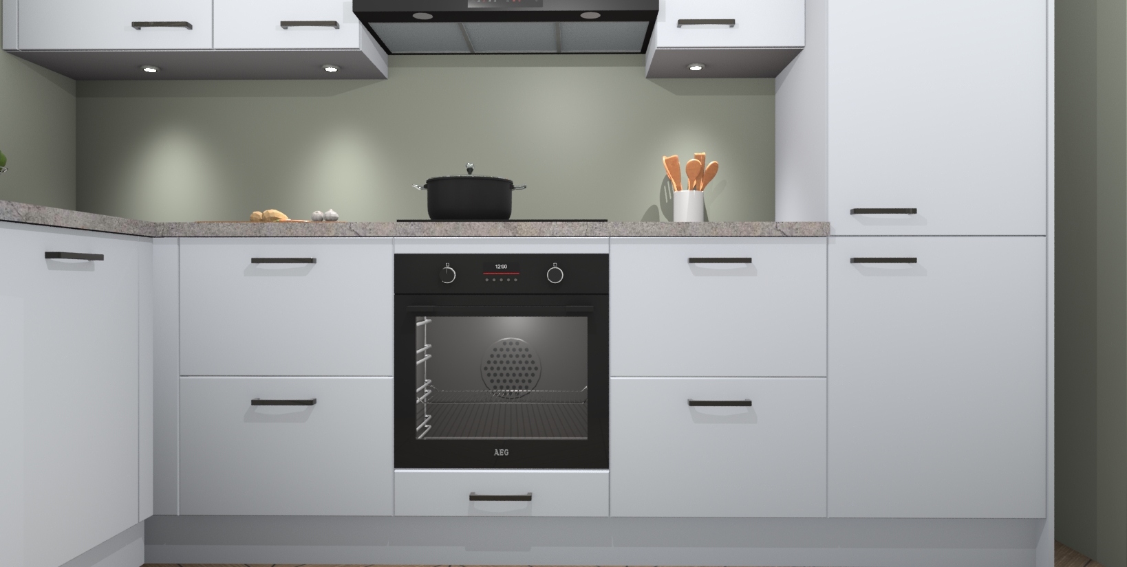 U hoeft zich ook geen zorgen te maken over een gebrek aan opbergruimte, want deze keuken heeft voldoende opbergmogelijkheden zowel boven als onder het aanrecht. Om het leven nog makkelijker te maken, wordt deze moderne hoekkeuken geleverd met 5 ingebouwde apparaten, waaronder een oven, inductiekookplaat, afzuigkap, vaatwasser en koelkast, zodat u in een mum van tijd klaar bent voor actie!