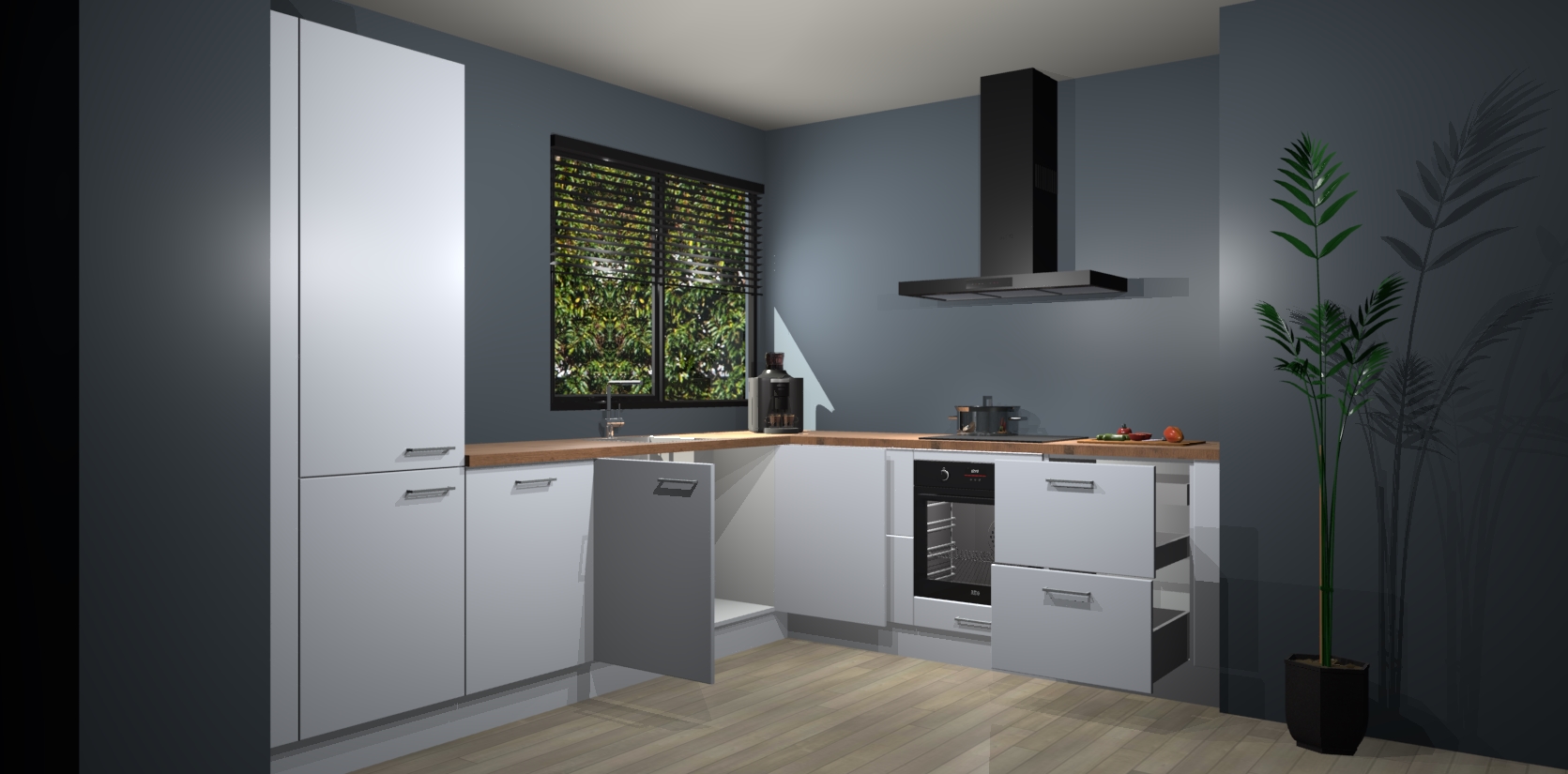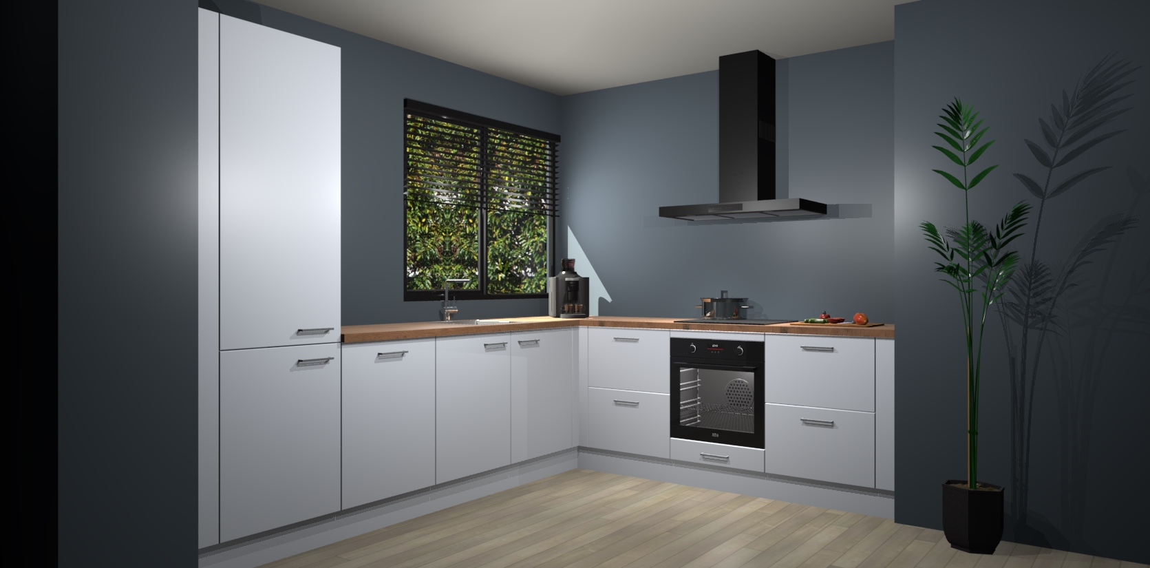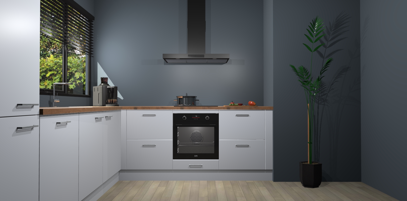 Met een modern, tijdloos design en ruime opslagruimte, zult u zich in no-time thuis voelen in uw nieuwe keuken. Uw leven wordt eenvoudiger met de soft-close deuren die voor het ultieme stille comfort zorgen - geen geluid dat u stoort terwijl u kookt. Ook is de keuken voorzien van 5 ingebouwde apparaten: een oven, inductie kookplaat, afzuigkap, vaatwasser en koelkast. Deze kunnen gemakkelijk na bestelling worden bijgewerkt naar AEG - waardoor uw luxe ervaring compleet is.