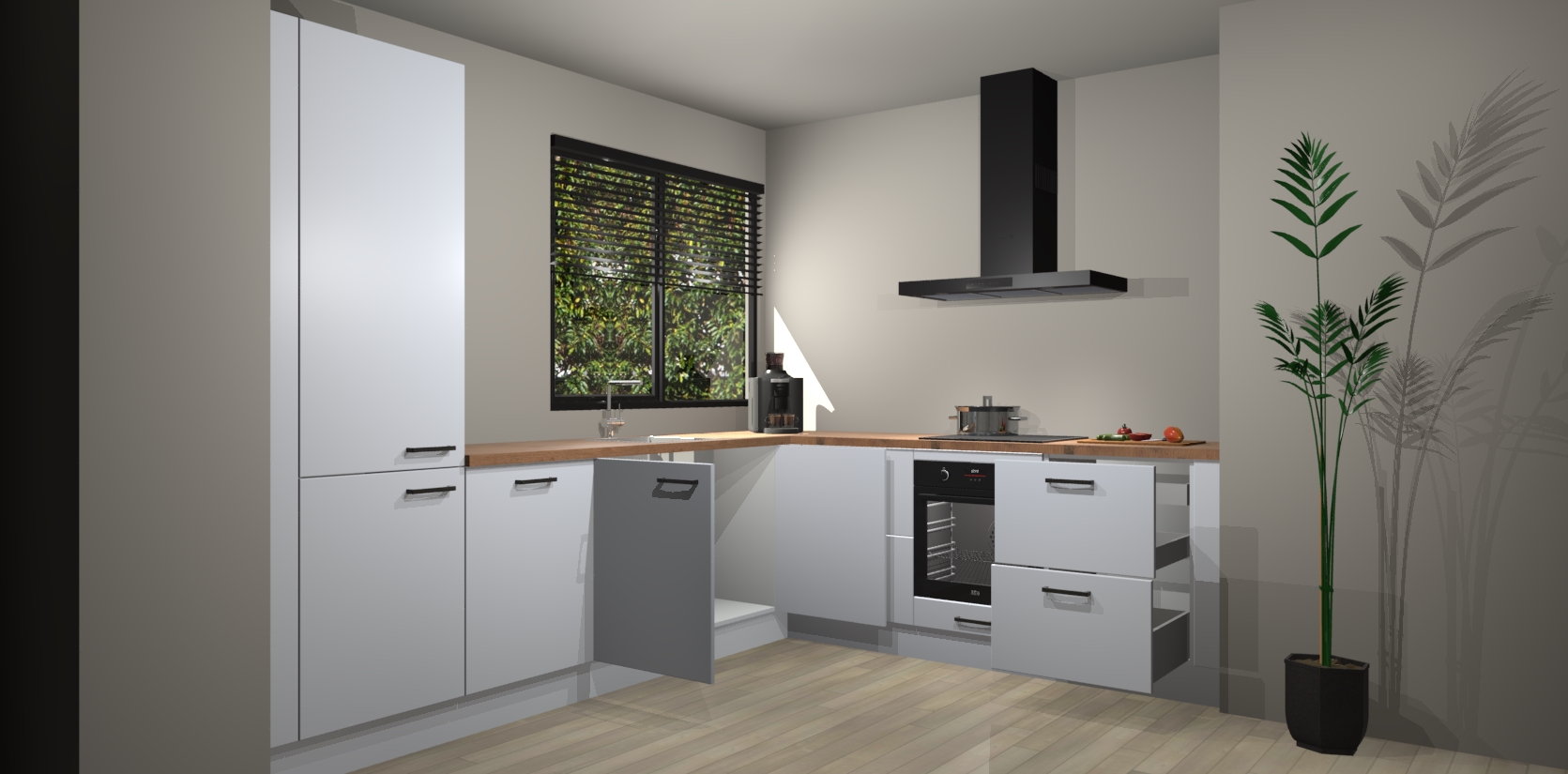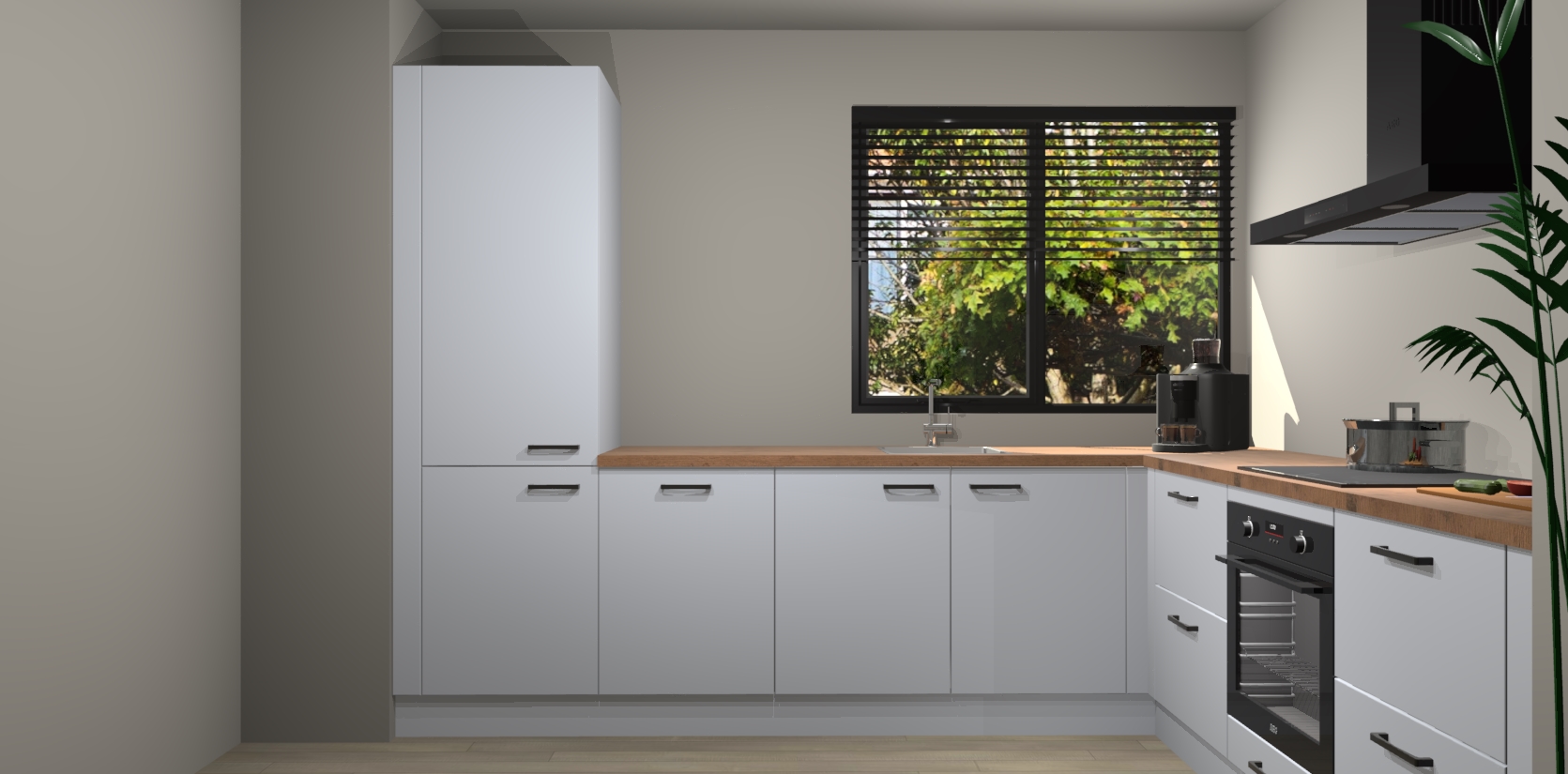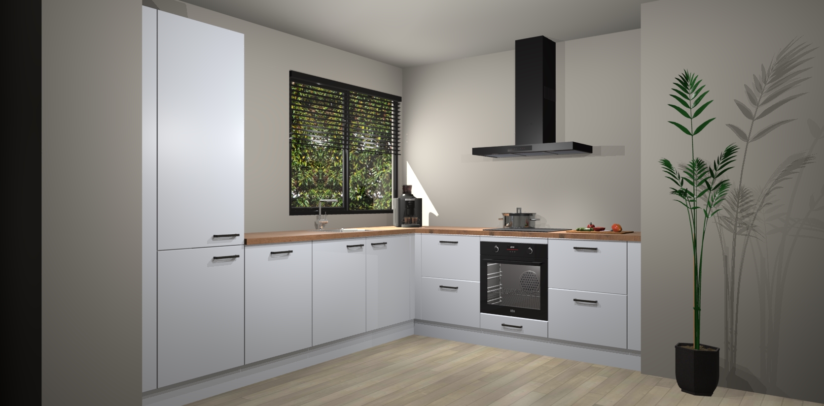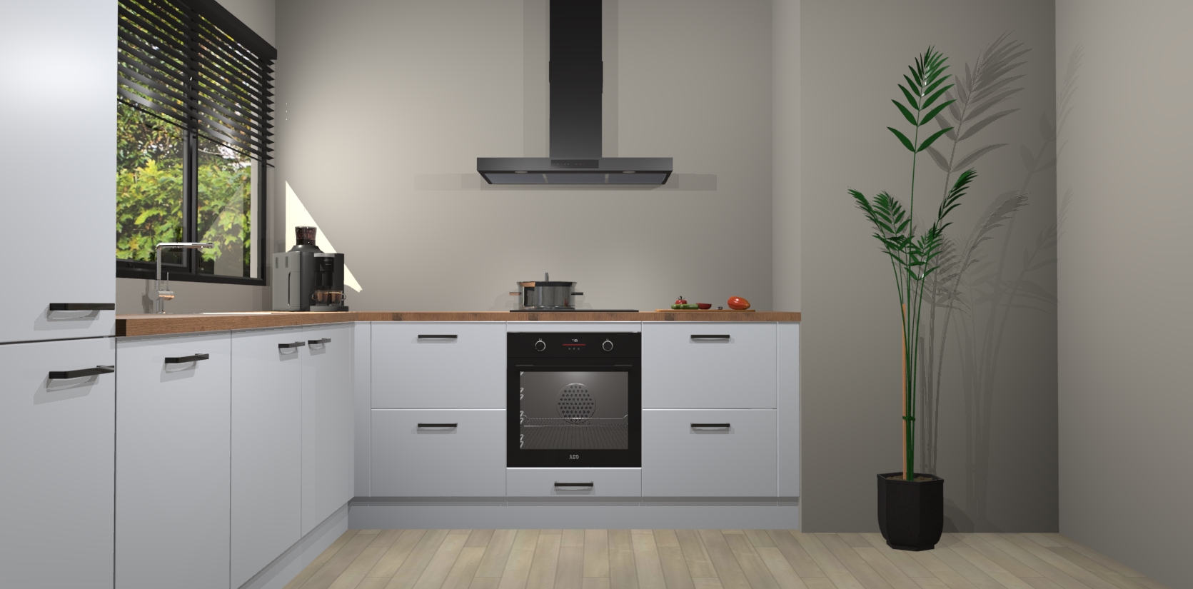 Met een modern, tijdloos design en ruime opslagruimte, zult u zich in no-time thuis voelen in uw nieuwe keuken. Uw leven wordt eenvoudiger met de soft-close deuren die voor het ultieme stille comfort zorgen - geen geluid dat u stoort terwijl u kookt. Ook is de keuken voorzien van 5 ingebouwde apparaten: een oven, inductie kookplaat, afzuigkap, vaatwasser en koelkast. Deze kunnen gemakkelijk na bestelling worden bijgewerkt naar AEG - waardoor uw luxe ervaring compleet is.