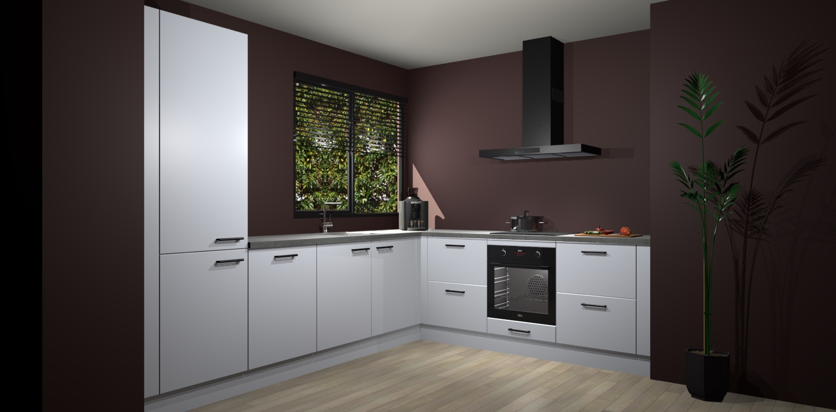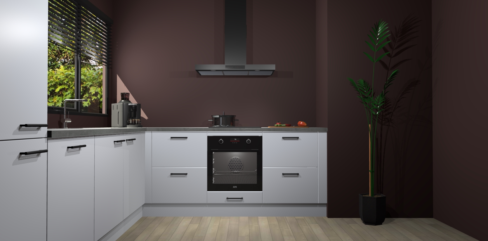 Met een modern, tijdloos design en ruime opslagruimte, zult u zich in no-time thuis voelen in uw nieuwe keuken. Uw leven wordt eenvoudiger met de soft-close deuren die voor het ultieme stille comfort zorgen - geen geluid dat u stoort terwijl u kookt. Ook is de keuken voorzien van 5 ingebouwde apparaten: een oven, inductie kookplaat, afzuigkap, vaatwasser en koelkast. Deze kunnen gemakkelijk na bestelling worden bijgewerkt naar AEG - waardoor uw luxe ervaring compleet is.