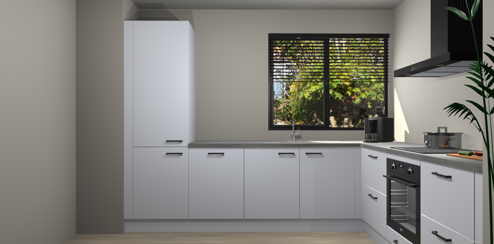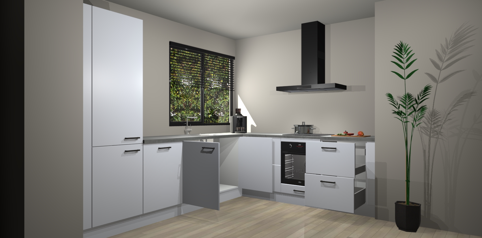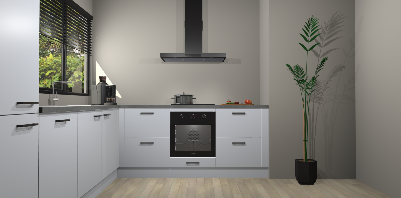 Met een modern, tijdloos design en ruime opslagruimte, zult u zich in no-time thuis voelen in uw nieuwe keuken. Uw leven wordt eenvoudiger met de soft-close deuren die voor het ultieme stille comfort zorgen - geen geluid dat u stoort terwijl u kookt. Ook is de keuken voorzien van 5 ingebouwde apparaten: een oven, inductie kookplaat, afzuigkap, vaatwasser en koelkast. Deze kunnen gemakkelijk na bestelling worden bijgewerkt naar AEG - waardoor uw luxe ervaring compleet is.