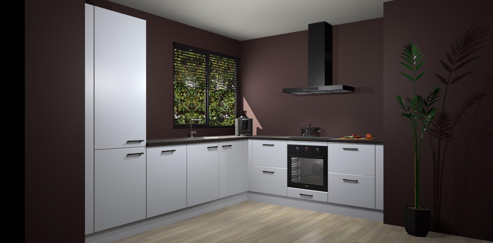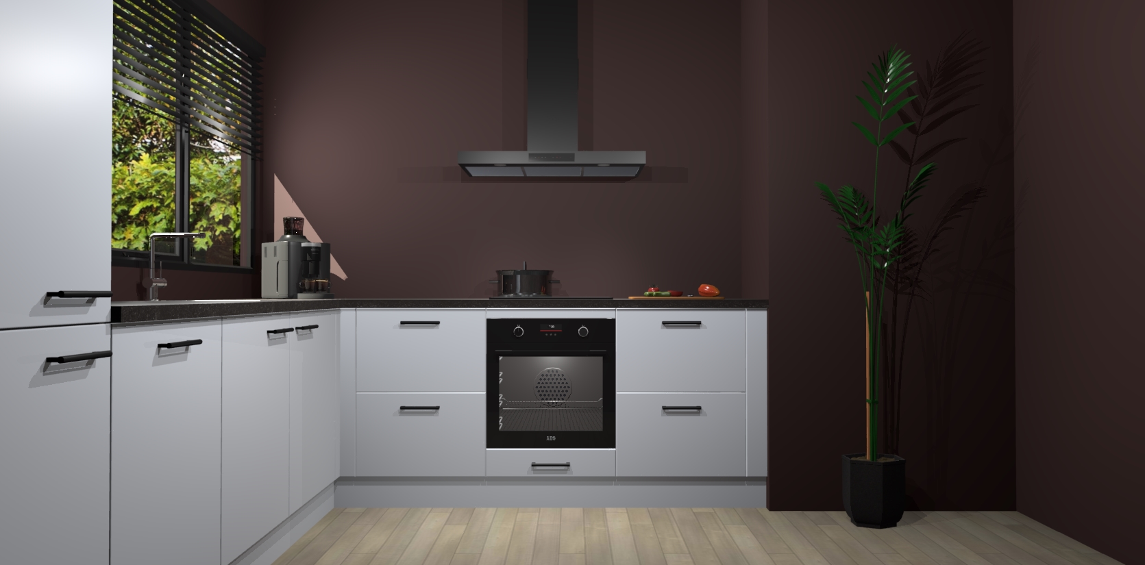 Met een modern, tijdloos design en ruime opslagruimte, zult u zich in no-time thuis voelen in uw nieuwe keuken. Uw leven wordt eenvoudiger met de soft-close deuren die voor het ultieme stille comfort zorgen - geen geluid dat u stoort terwijl u kookt. Ook is de keuken voorzien van 5 ingebouwde apparaten: een oven, inductie kookplaat, afzuigkap, vaatwasser en koelkast. Deze kunnen gemakkelijk na bestelling worden bijgewerkt naar AEG - waardoor uw luxe ervaring compleet is.