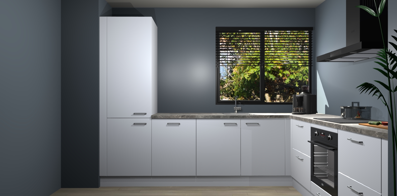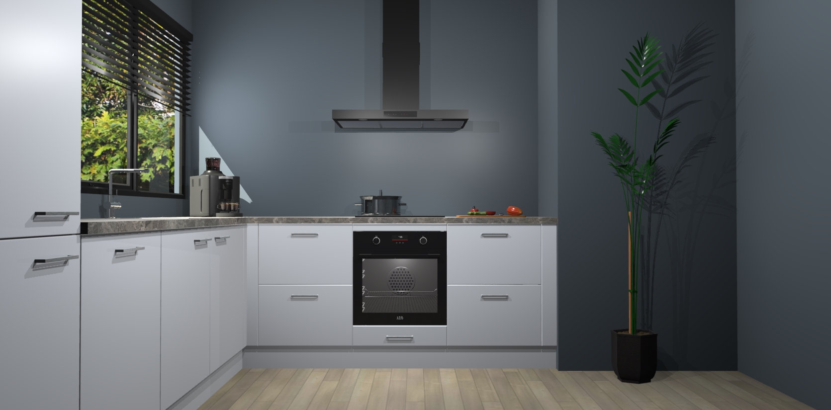 Met een modern, tijdloos design en ruime opslagruimte, zult u zich in no-time thuis voelen in uw nieuwe keuken. Uw leven wordt eenvoudiger met de soft-close deuren die voor het ultieme stille comfort zorgen - geen geluid dat u stoort terwijl u kookt. Ook is de keuken voorzien van 5 ingebouwde apparaten: een oven, inductie kookplaat, afzuigkap, vaatwasser en koelkast. Deze kunnen gemakkelijk na bestelling worden bijgewerkt naar AEG - waardoor uw luxe ervaring compleet is.