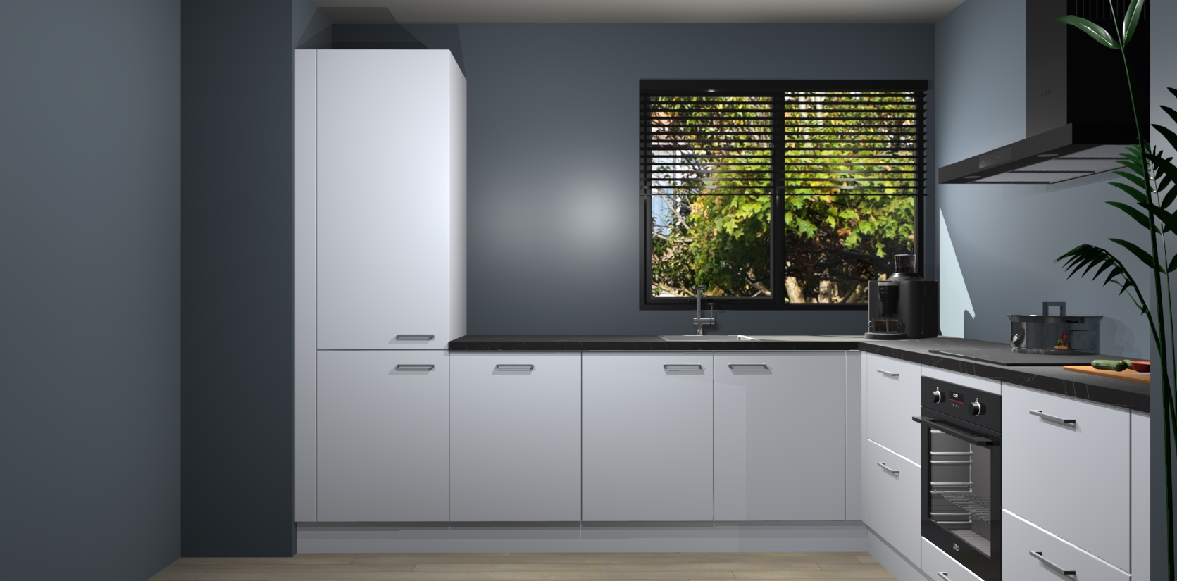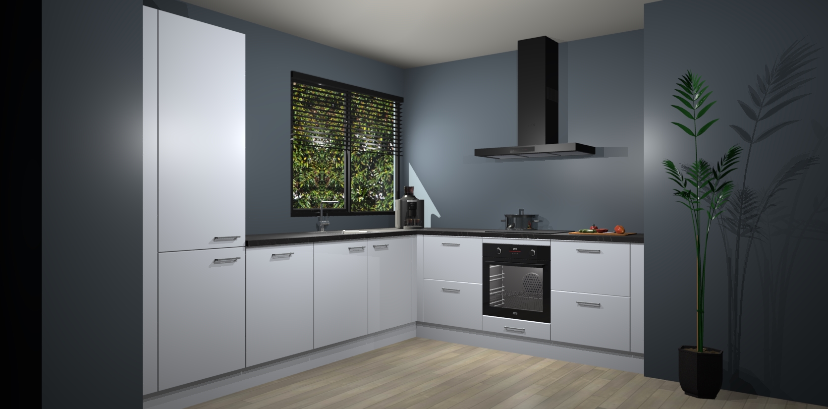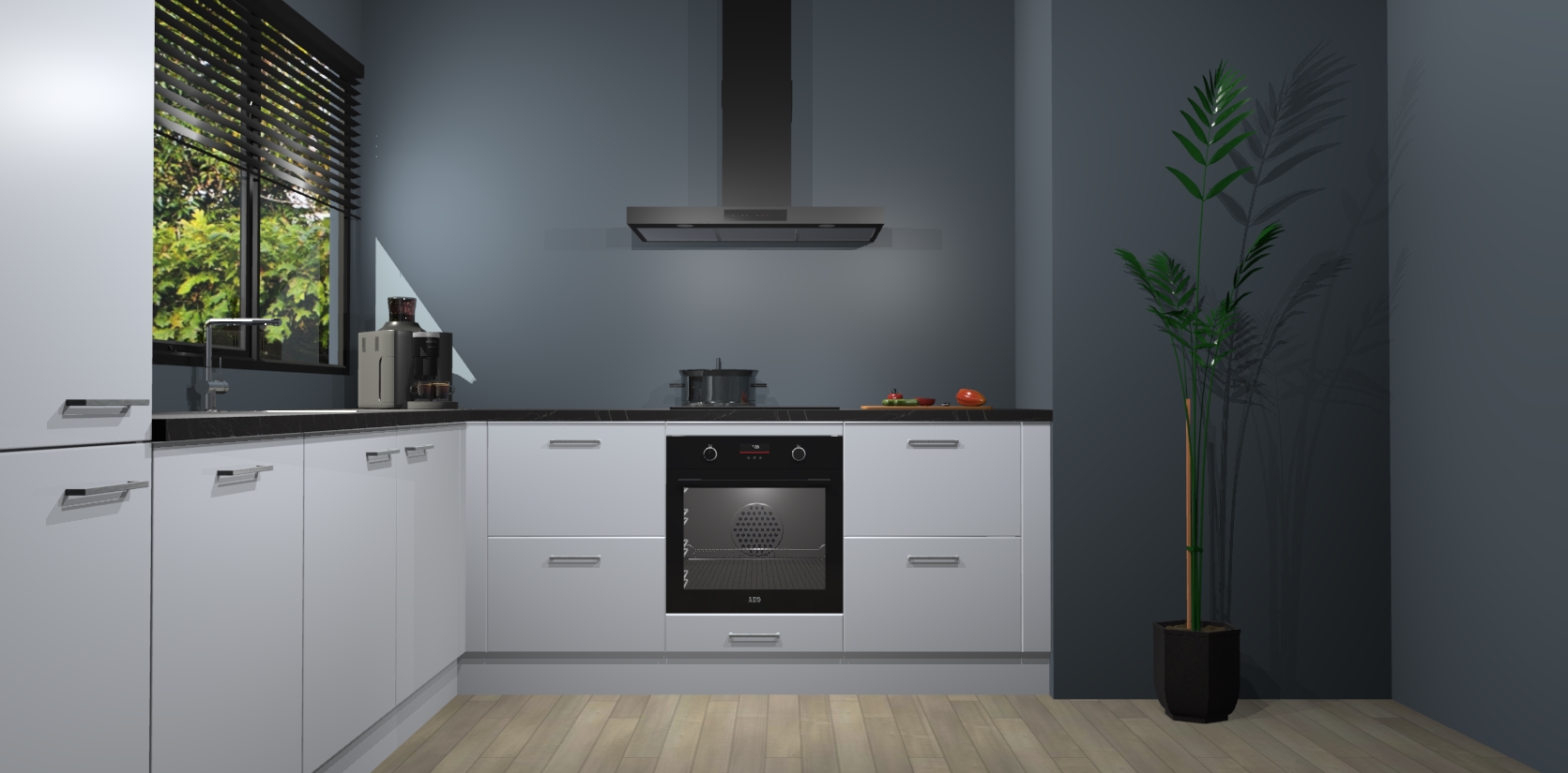 Met een modern, tijdloos design en ruime opslagruimte, zult u zich in no-time thuis voelen in uw nieuwe keuken. Uw leven wordt eenvoudiger met de soft-close deuren die voor het ultieme stille comfort zorgen - geen geluid dat u stoort terwijl u kookt. Ook is de keuken voorzien van 5 ingebouwde apparaten: een oven, inductie kookplaat, afzuigkap, vaatwasser en koelkast. Deze kunnen gemakkelijk na bestelling worden bijgewerkt naar AEG - waardoor uw luxe ervaring compleet is.