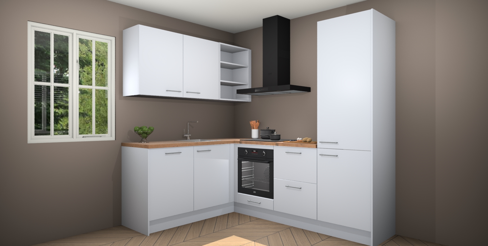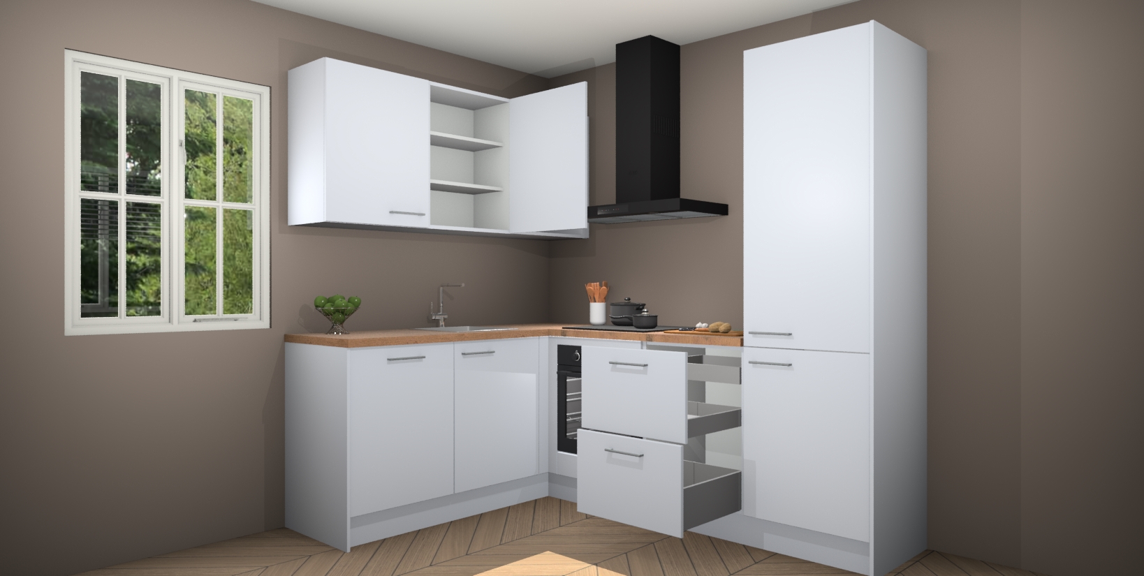 Voor nog meer gemak heeft deze keuken vijf ingebouwde apparaten - oven, inductiekookplaat, afzuigkap, vaatwasser en koelkast. Bovendien hebben alle kasten softclose deuren voor extra comfort bij het sluiten. Dit alles voor een verrassend lage vaste prijs - u vindt nergens anders een betere deal!