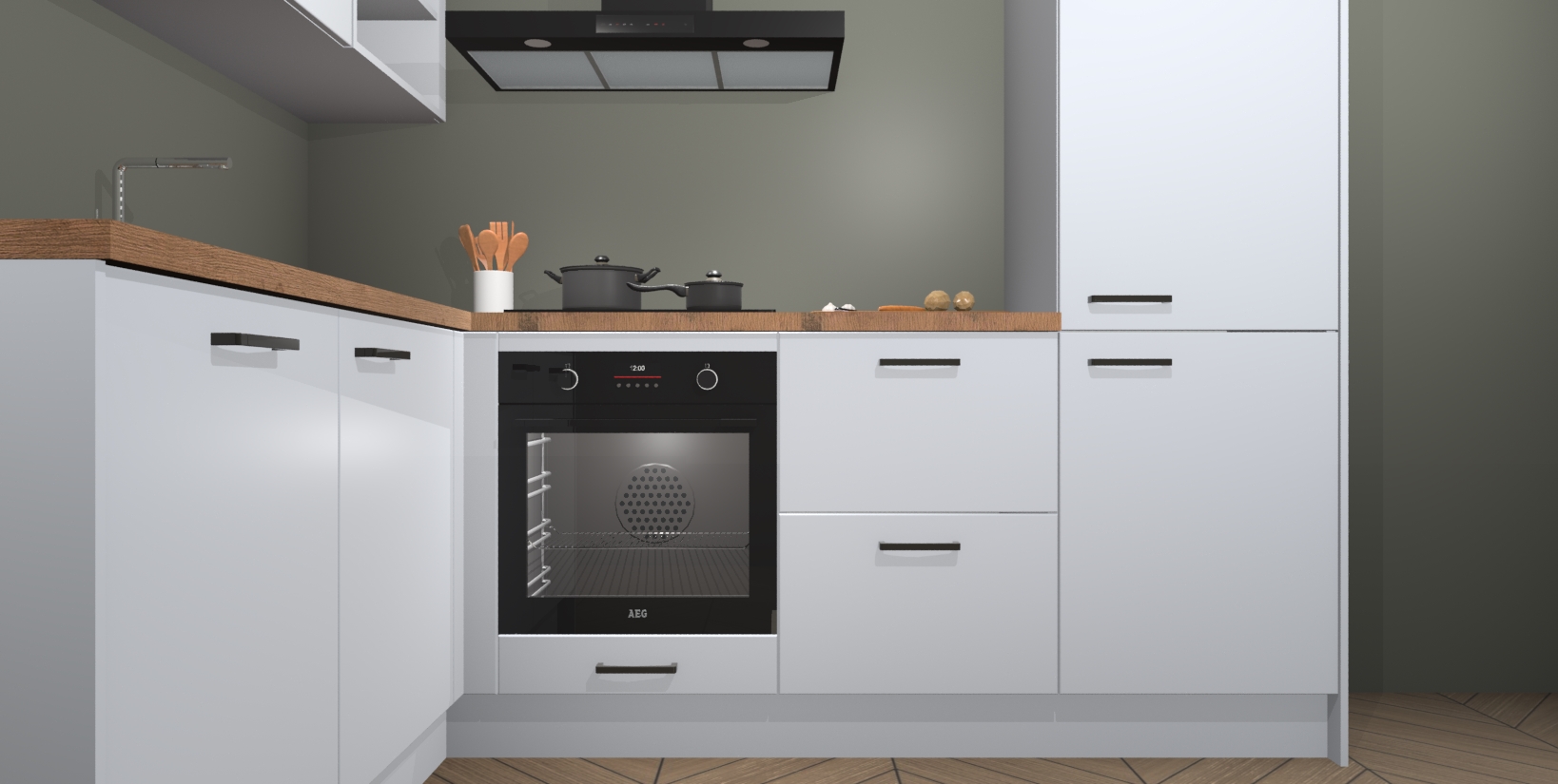 Voor nog meer gemak heeft deze keuken vijf ingebouwde apparaten - oven, inductiekookplaat, afzuigkap, vaatwasser en koelkast. Bovendien hebben alle kasten softclose deuren voor extra comfort bij het sluiten. Dit alles voor een verrassend lage vaste prijs - u vindt nergens anders een betere deal!