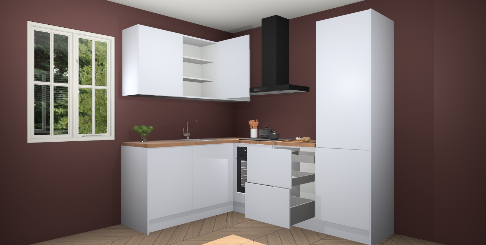Inclusief plinten, stelpoten en werkblad