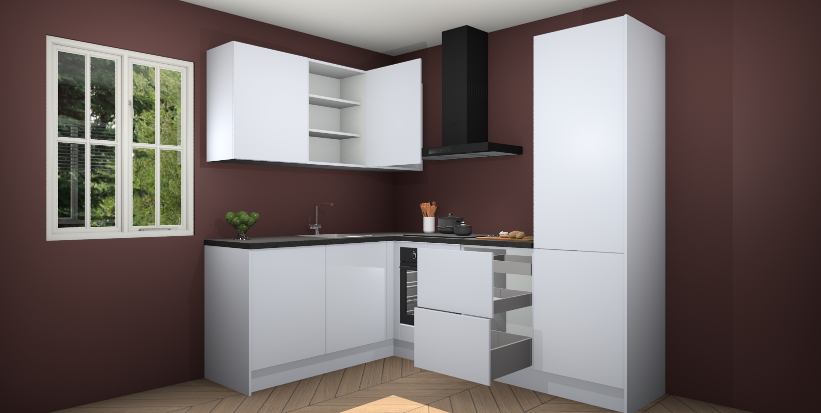 Maak kennis met de Sneeuwwitte keuken Boekarest, een moderne hoekkeuken waar al uw vrienden en familie jaloers op zullen zijn! Het verbluffende mooie ontwerp past in elk interieur en is een ideale keuze voor wie op zoek is naar een klassieke, maar verfijnde look.