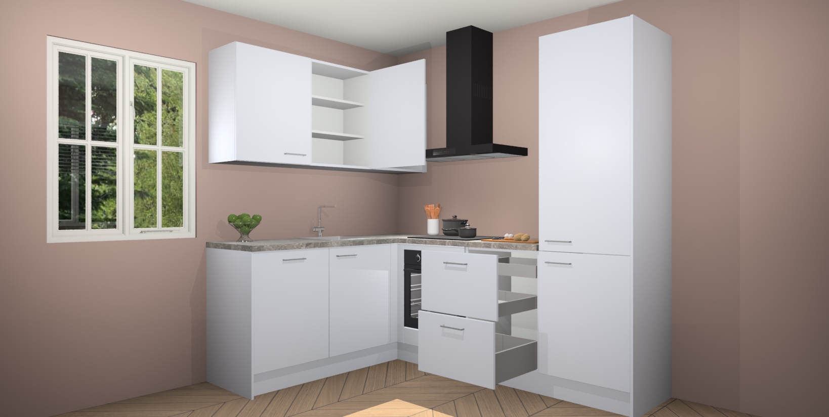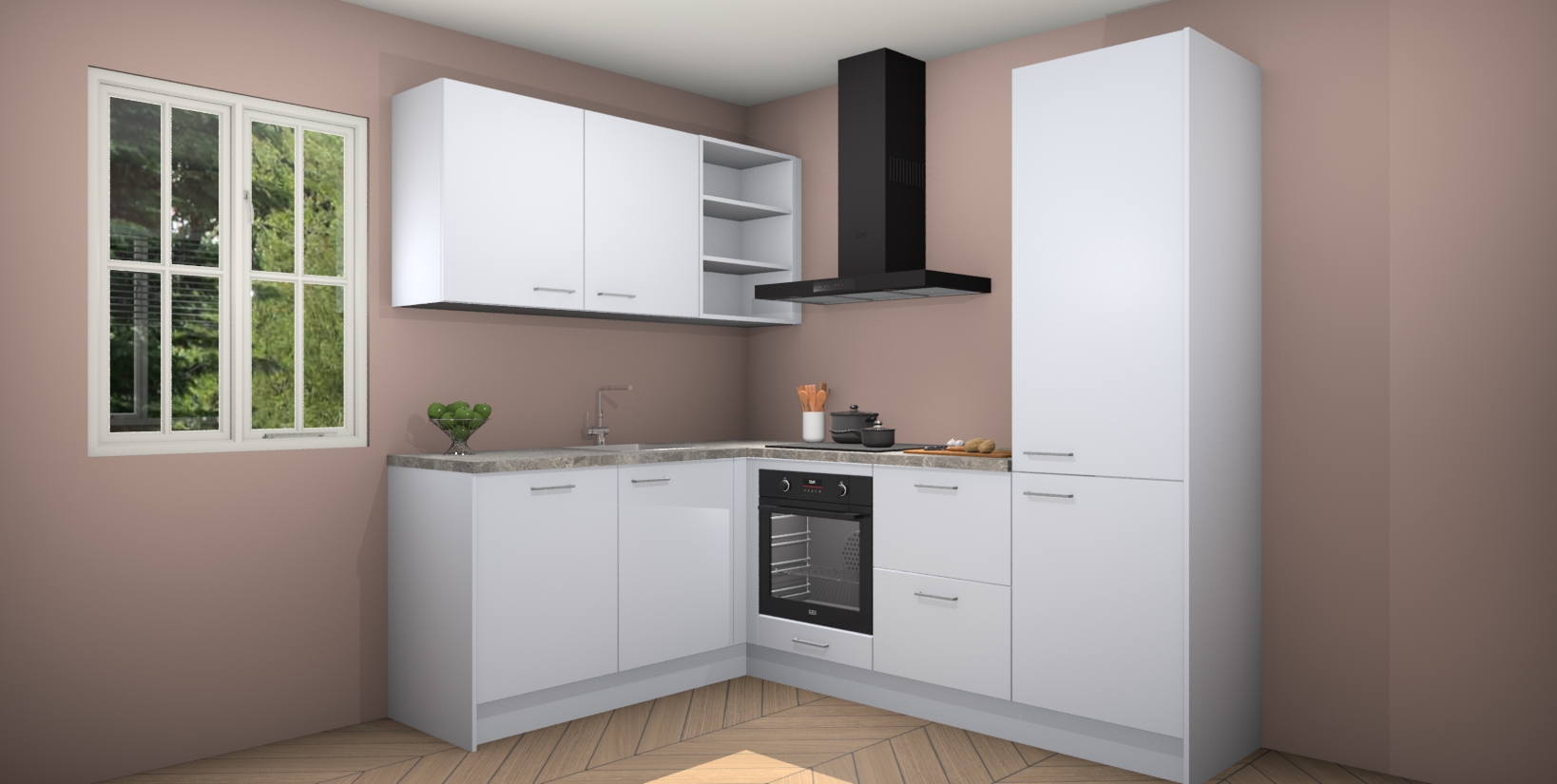 Maak kennis met de Sneeuwwitte keuken Boekarest, een moderne hoekkeuken waar al uw vrienden en familie jaloers op zullen zijn! Het verbluffende mooie ontwerp past in elk interieur en is een ideale keuze voor wie op zoek is naar een klassieke, maar verfijnde look.