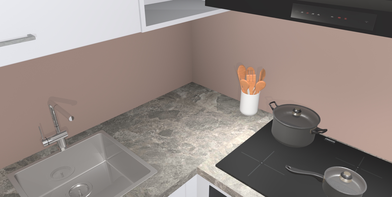 - Uitsparing van kookplaat, spoelbak en kraan dient u zelf te verzorgen.