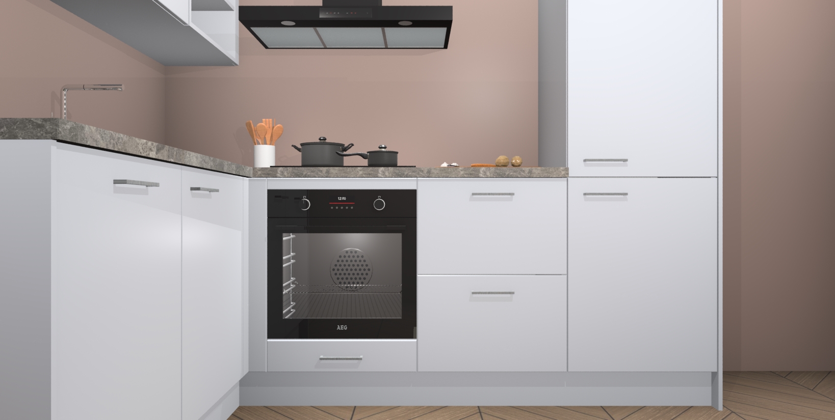 Voor nog meer gemak heeft deze keuken vijf ingebouwde apparaten - oven, inductiekookplaat, afzuigkap, vaatwasser en koelkast. Bovendien hebben alle kasten softclose deuren voor extra comfort bij het sluiten. Dit alles voor een verrassend lage vaste prijs - u vindt nergens anders een betere deal!